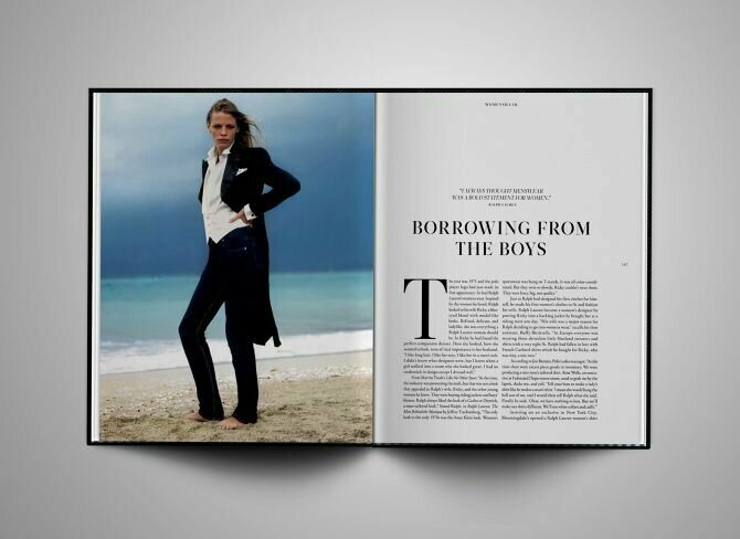 Flusser says in his introduction, “Although one of my primary missions is to establish an artistic knighting of Mr. Lauren, of equal importance is to illuminate his many courageous marketing and business decisions along with their life lessons for future generations to be inspired by. Watching Ralph become who he is has long been a source of inspiration and wonder for those of us who share his Aristotelian vision, ‘not with things as they are, but with things as they might be and ought to be.’”