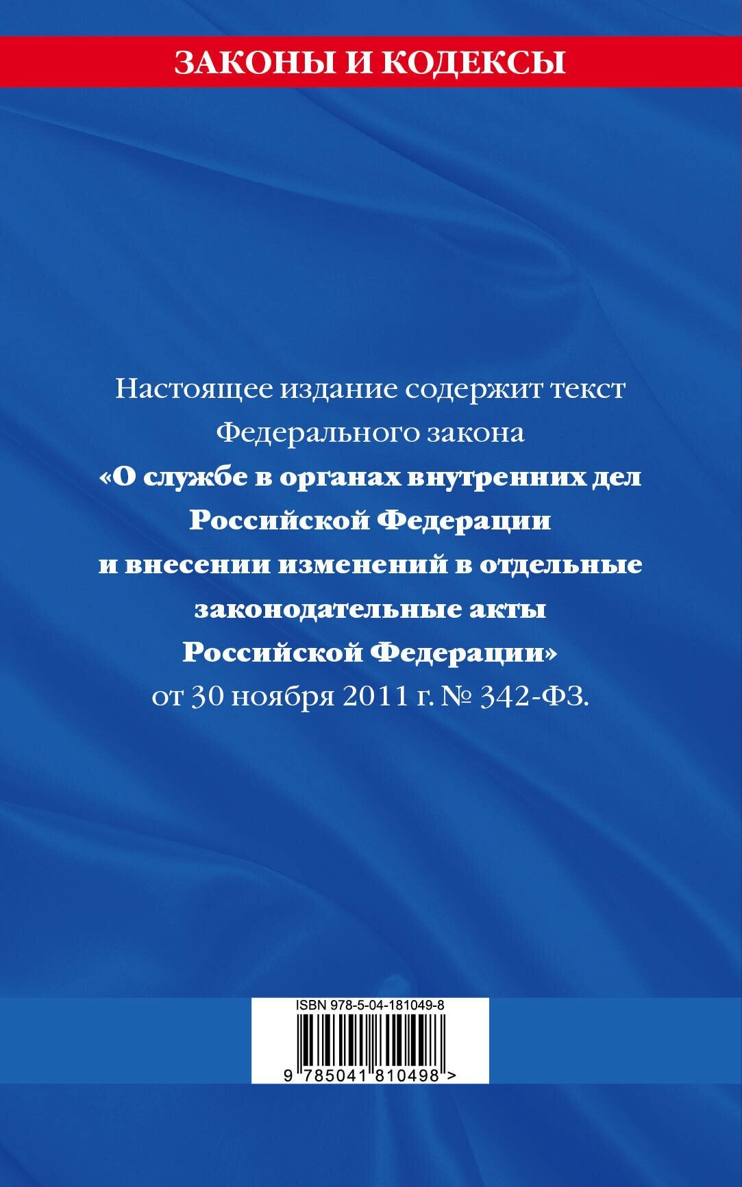 Федеральный закон "О службе в органах внутренних дел Российской Федерации": по состоянию на 2023 год (Коллектив авторов); ООО "Издательство "Эксмо", 2023