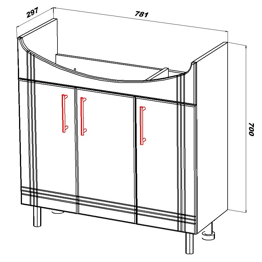 - Габариты (ШxВxГ): 781х800х297 мм.
