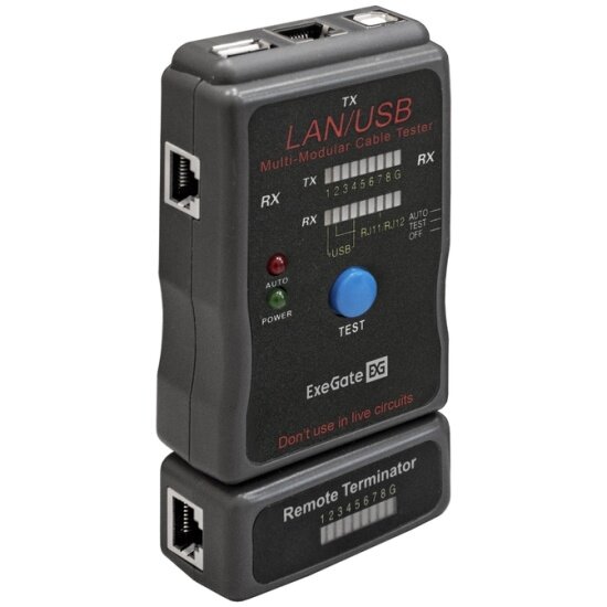 Тестер Exegate EX293160RUS сетевой для RJ-45/RJ-11/RJ-12/USB EX-T5448