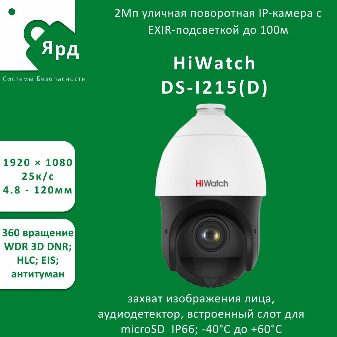 Видеокамера IP HiWatch 2Мп уличная поворотная с EXIR-подсветкой до 100м DS-I215(D)