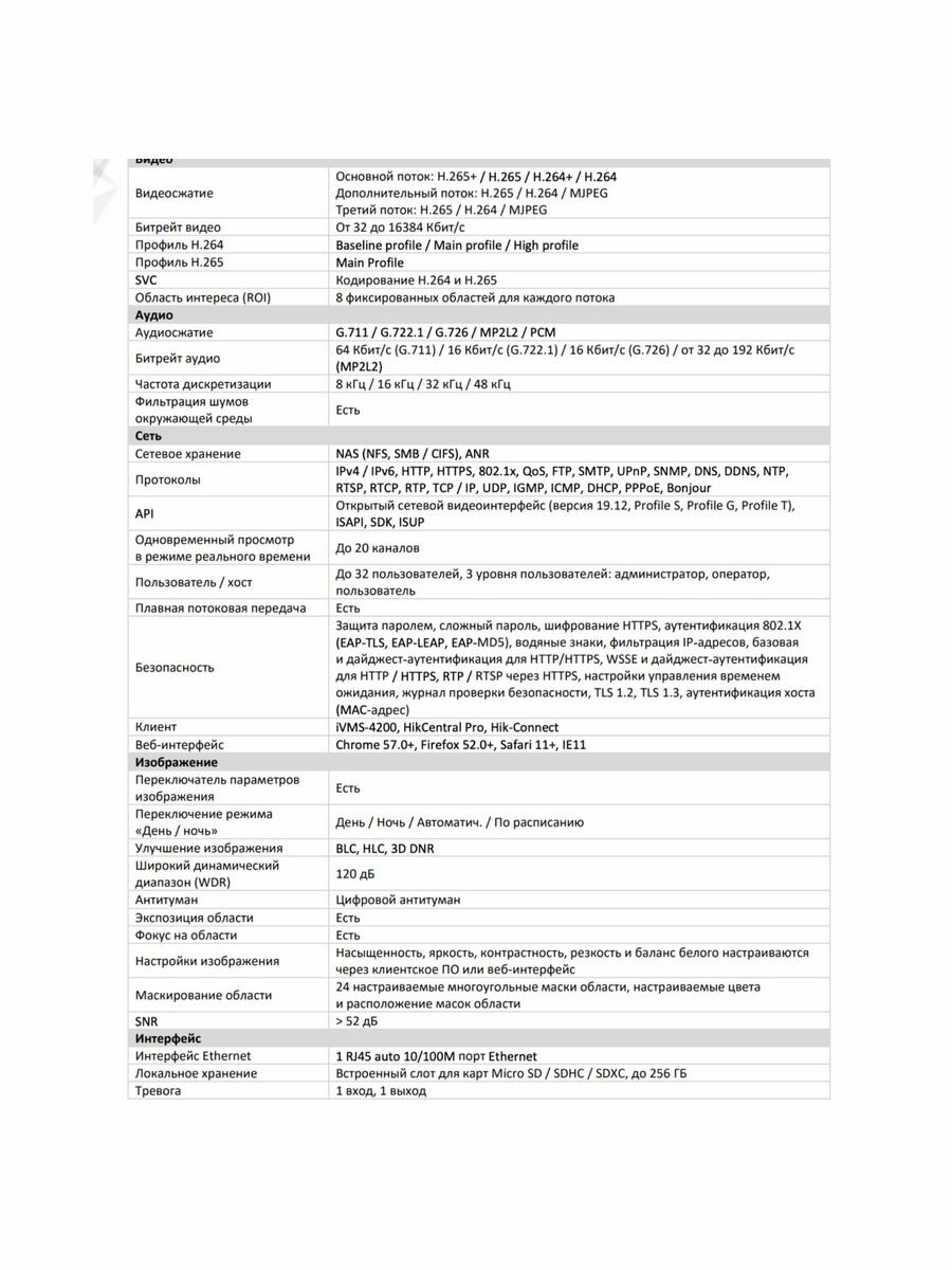 | Сжатие видеосигнала | H.264, H.264+, H.265, H.265+ |