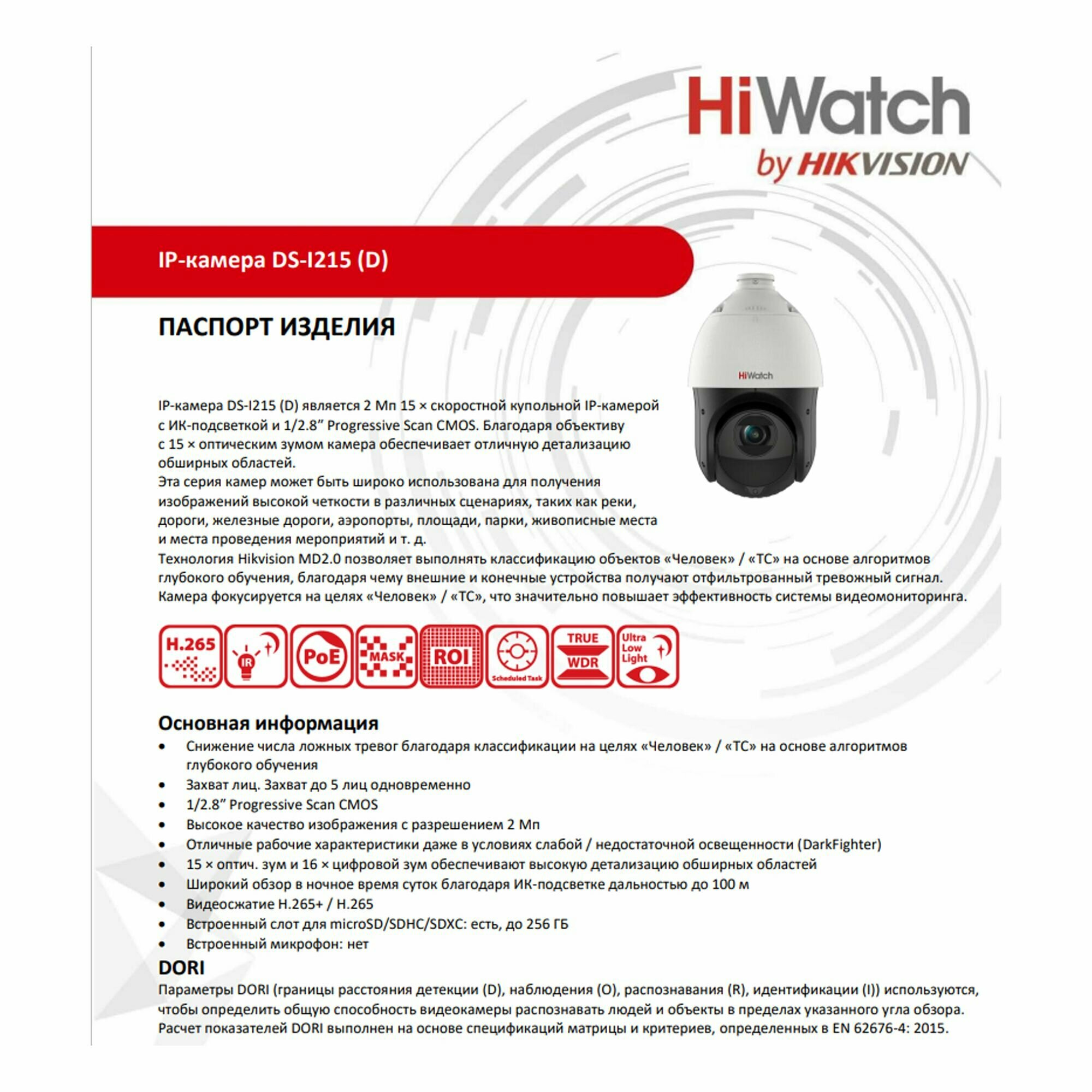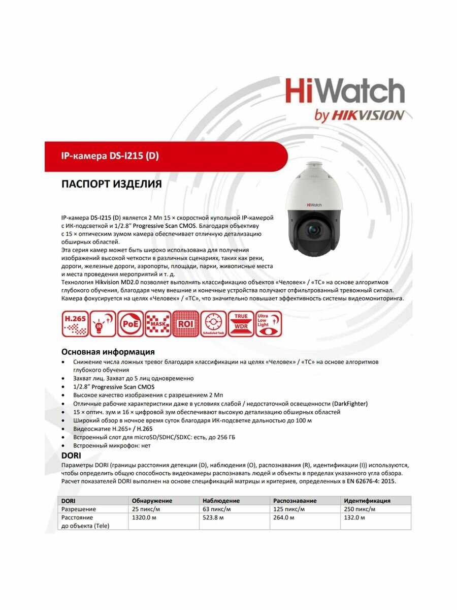 | Управление PTZ | ONVIF (версия 19.12, Profile S, Profile G, Profile T), ISAPI, SDK, API, ISUP |