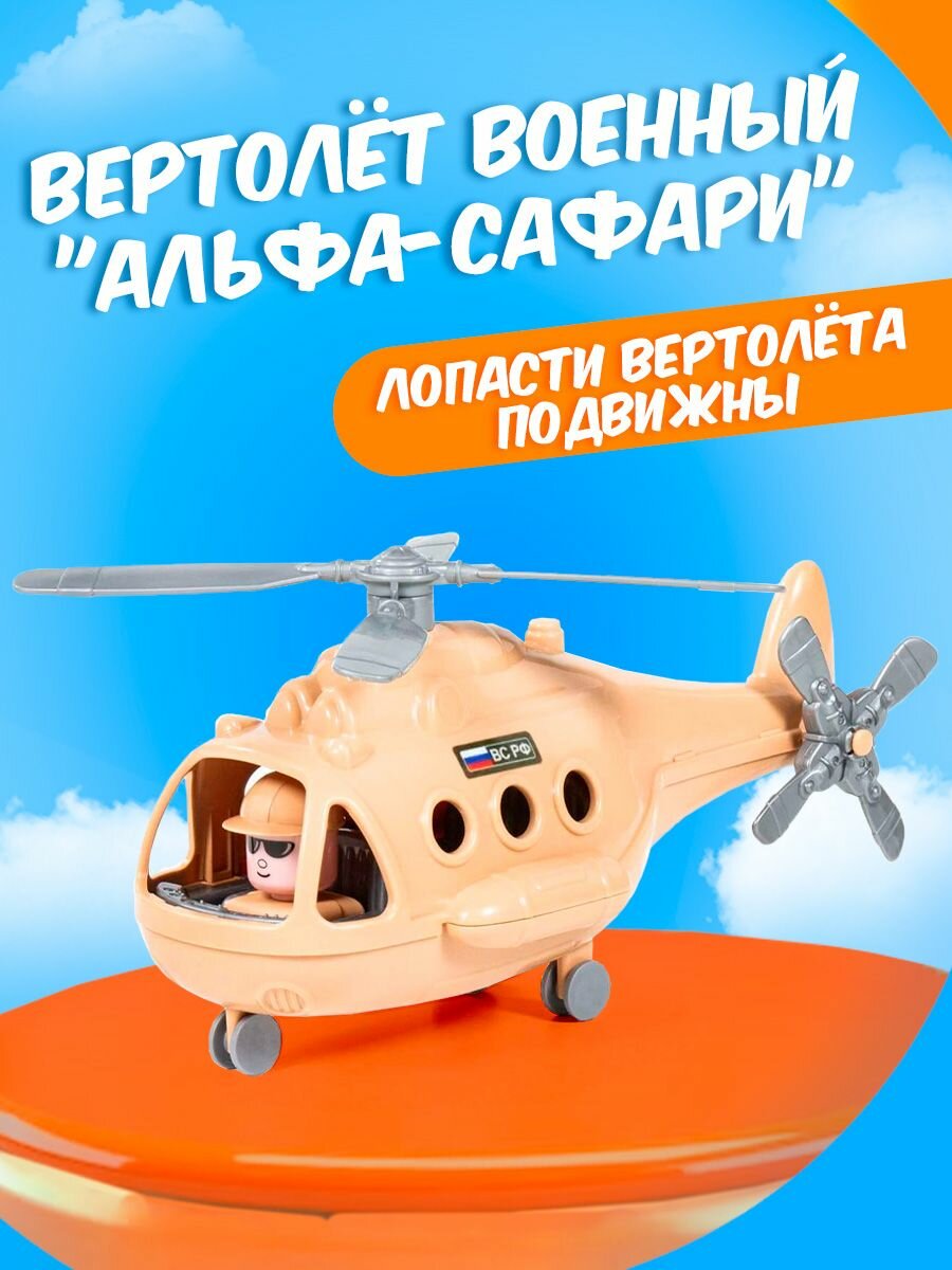 Игрушка от бренда Полесье Вертолет военный Альфа-Сафари 68774 несомненно понравится вашему ребенку. Вертолёт военный «Альфа-Сафари» от фабрики «Полесье» — это игрушка, которая имеет округлую форму и стильный дизайн. Лопасти вертолёта подвижны, это позволяет сделать игру более реалистичной и захватывающей. Кабина имеет окна и оснащена сиденьями, одно из которых занимает фигурка пилота. Также конструкция вертолёта предполагает наличие шасси с колёсиками. Они позволяют передвигать игрушку по плоской поверхности и способствуют созданию различных игровых сценариев. Вертолёт выполнен в бежевом цвете. Поставляется в яркой полиграфии.