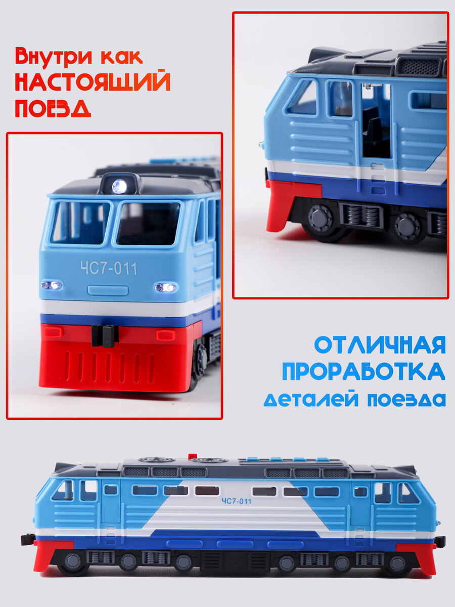 Коллекционная металлическая модель «Локомотив» торговой марки «Технопарк». Синий «Локомотив» торговой марки «Технопарк» — это оригинальный поезд, выполненная с учётом всех особенностей прототипа. Игра с инерционной моделью торговой марки «Технопарк» тренирует координацию движений, внимание, ловкость, знакомит ребёнка с видами транспорта.
