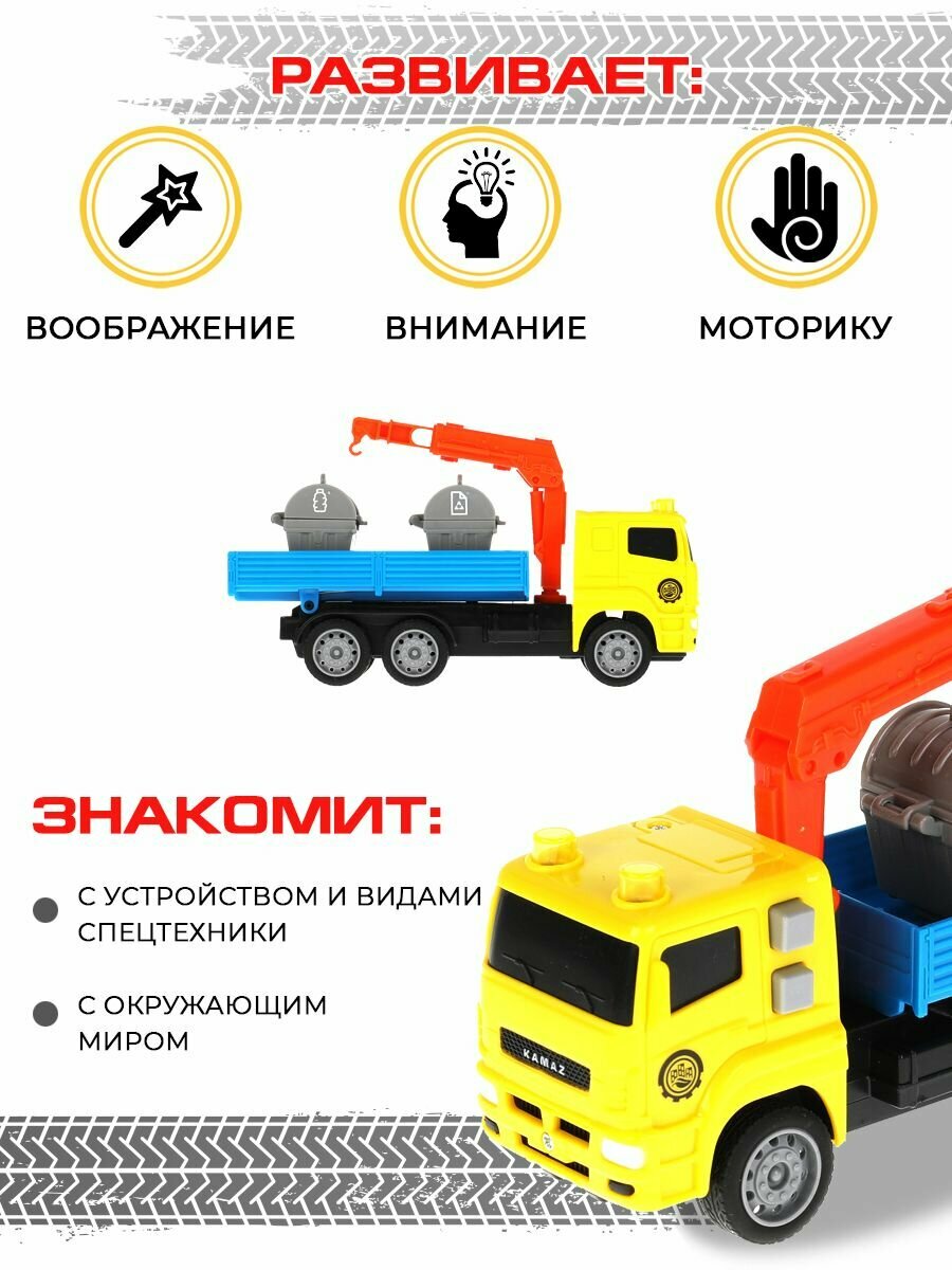 Машина пластик свет-звук KAMAZ МАНИПУЛЯТОР 17 см КАМСRN-17РLСN-YЕВU ТЕХНОПАРК