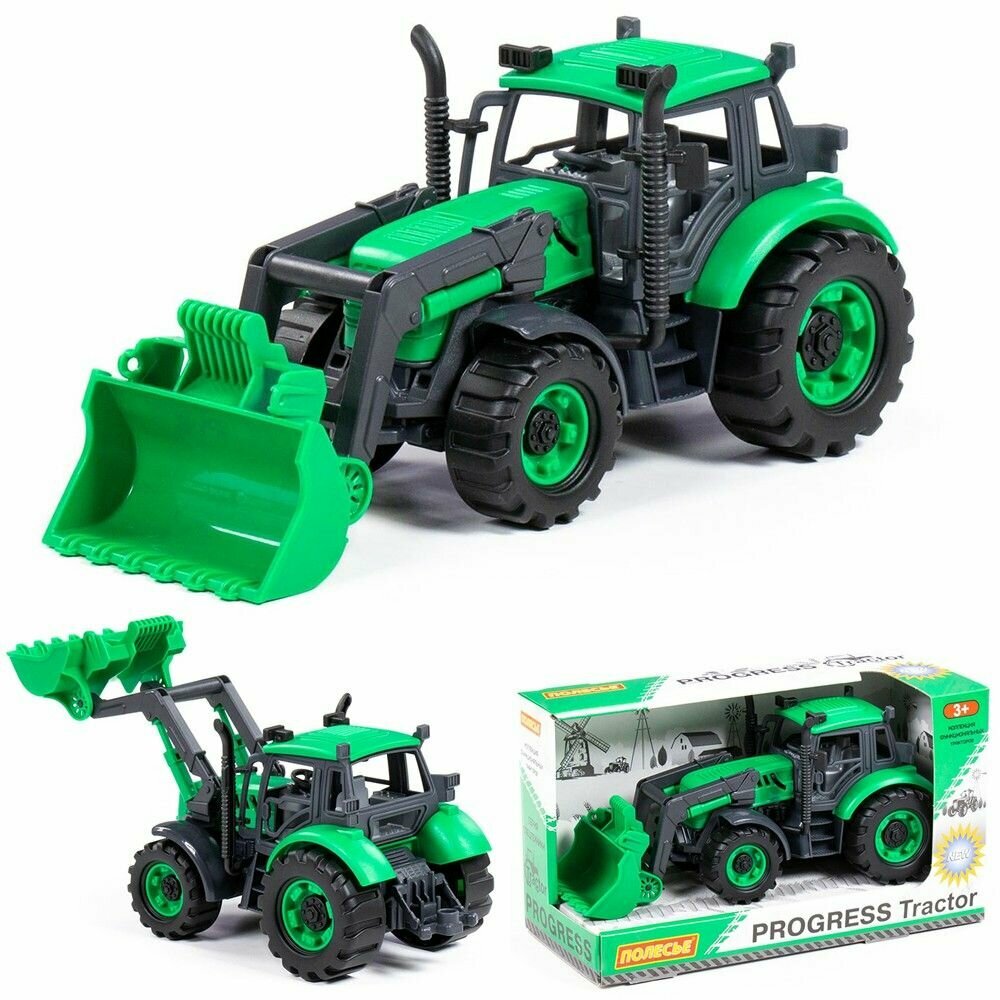 Погрузчик "Прогресс" инерционный зелёный (в коробке) 91796 Полесье