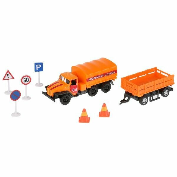 Игрушка от бренда Технопарк Машина УРАЛ аварийный SВ-18-26-U(S)+АSSТ-WВ несомненно понравится вашему ребенку. Юного водителя увлечёт игра с машинкой, выполненной с учётом всех особенностей прототипа. Благодаря открывающимся дверям и багажнику, которые делают Камаз максимально похожим на настоящий, всегда можно заглянуть машинке внутрь, чтобы убедиться - каждая её деталь отлично проработана. В комплект к машинке идёт: прицеп, 4 дорожных знака и два конуса. Реалистичный дизайн игрушек позволит с головой погрузиться в игру.