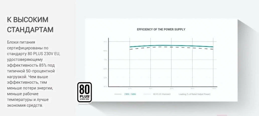 | Соответствие стандартам 80PLUS | 80PLUS |