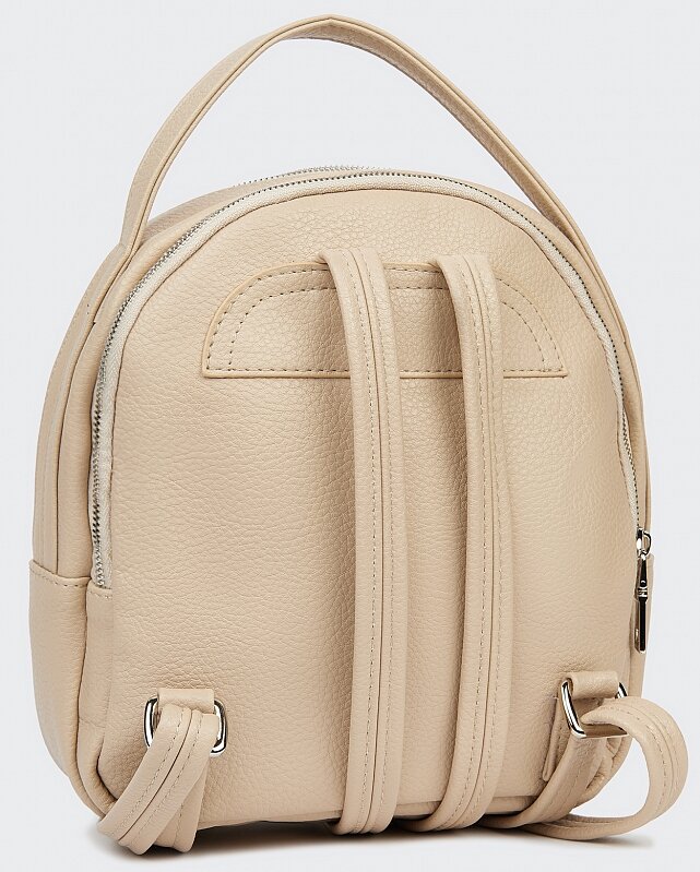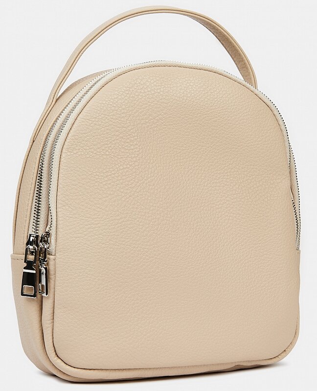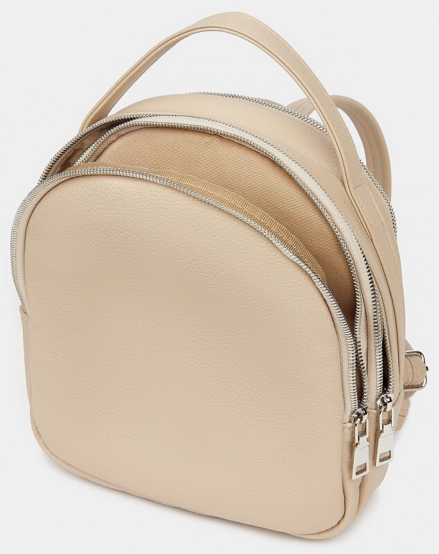 Рюкзак городской женский из экокожи с зернистой фактурой. Плоское внутреннее пространство разделено на три отделения на молниях, все вещи будут на своих местах. Носить удобно в руках, на плече или за спиной на двух лямках. Минималистичный дизайн и мягкие линии формы делают модель женственной. Рюкзак бежевый дополнит повседневные образы в стиле casual.