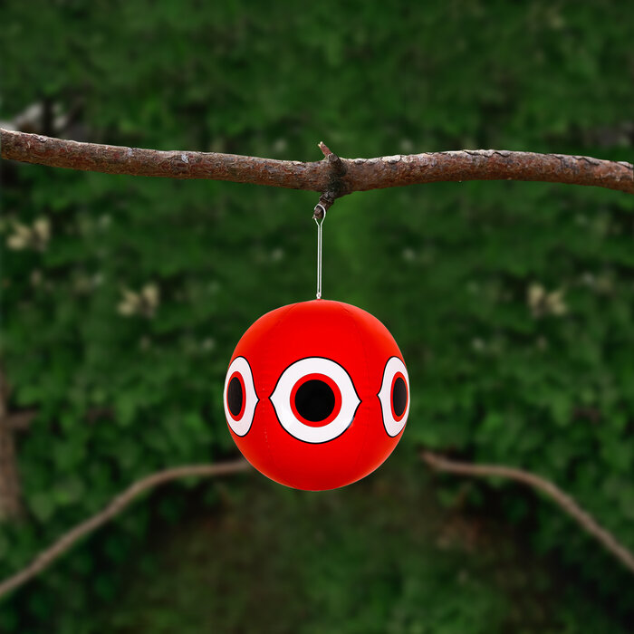 3D шар с глазами хищника ? бесшумное, эффективное и эстетичное средство отпугивания птиц. Крупные глаза хищной птицы нанесены на шар диаметром 40 см и вызывают у других птиц инстинктивный страх. Голографическое нанесение изображения придает объем и реалистичность. Экономичен -не требует расходных материалов или элементов питания. Абсолютно бесшумен. Пользоваться отпугивателем крайне просто. Достаточно накачать шар воздухом - надувать насосом для велосипедных шин, наклеить светоотражающие кружочки на зрачки глаз и подвесить в месте, требующем защиты. При дуновении ветерка 3D шар будет покачиваться, создавая максимальный эффект отпугивания.