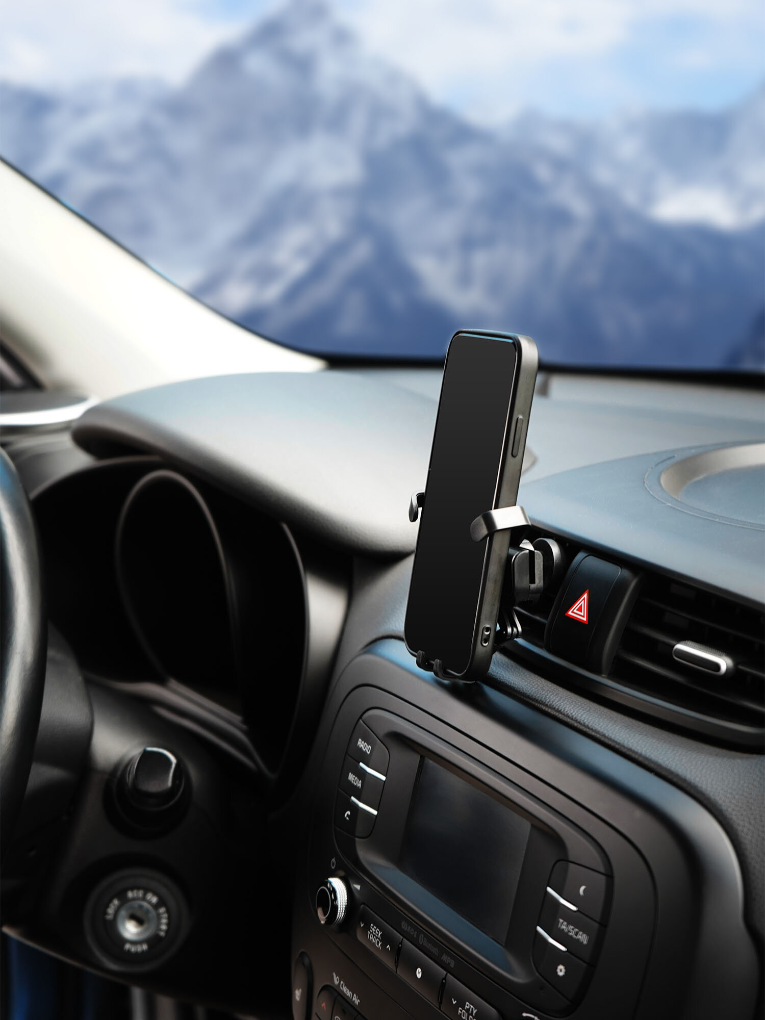 держатель телефона 58-85мм в дефлектор гравитационный черный AIRLINE AEAG009