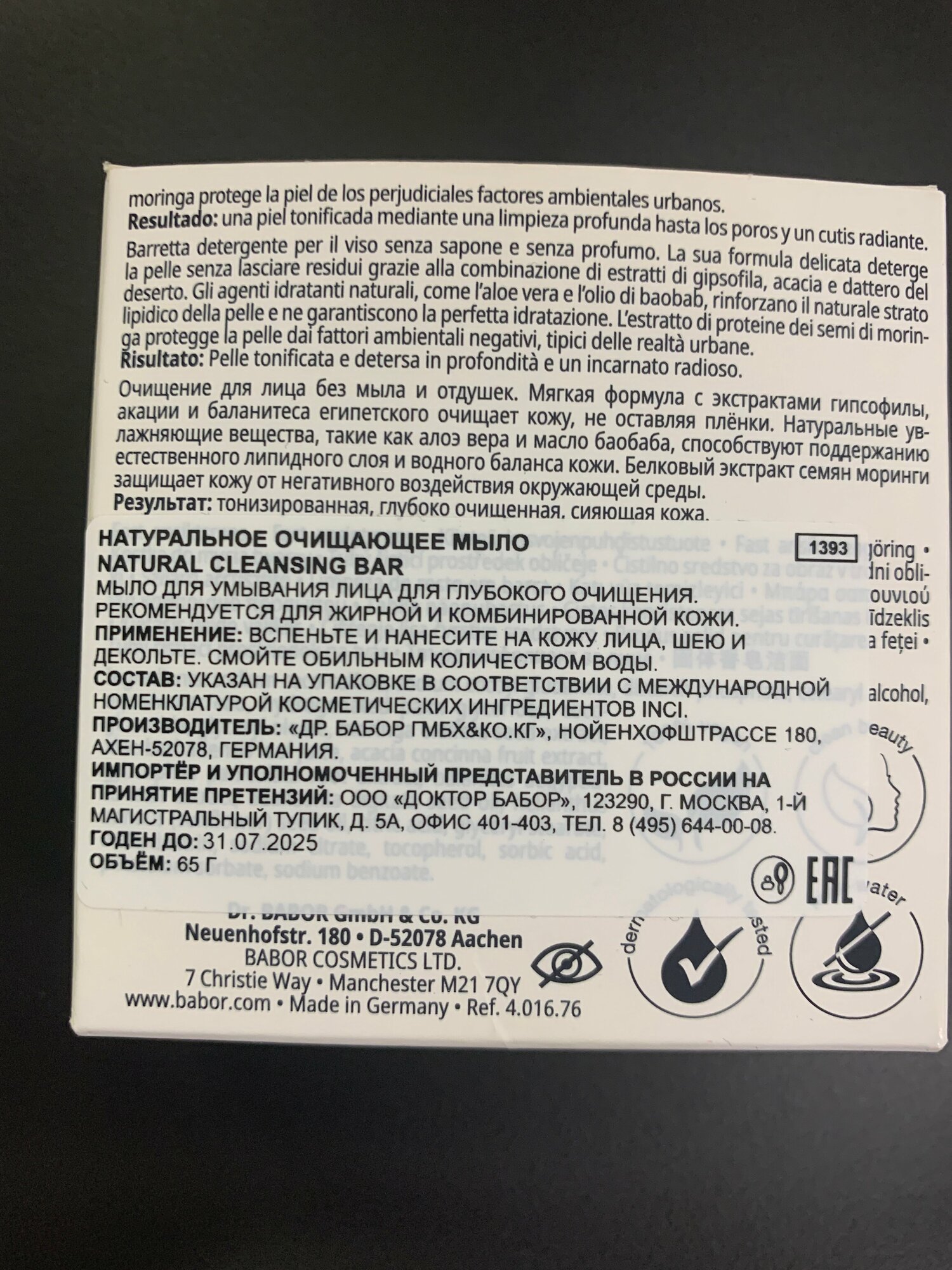 На сегодняшний день товар «BABOR Мыло натуральное очищающее рефилл / Natural Cleansing Bar Refill 65 гр (4.016.76)» можно купить с кешбеком в 3 магазинах: Cdek.shopping, evitastore, Яндекс.Маркет