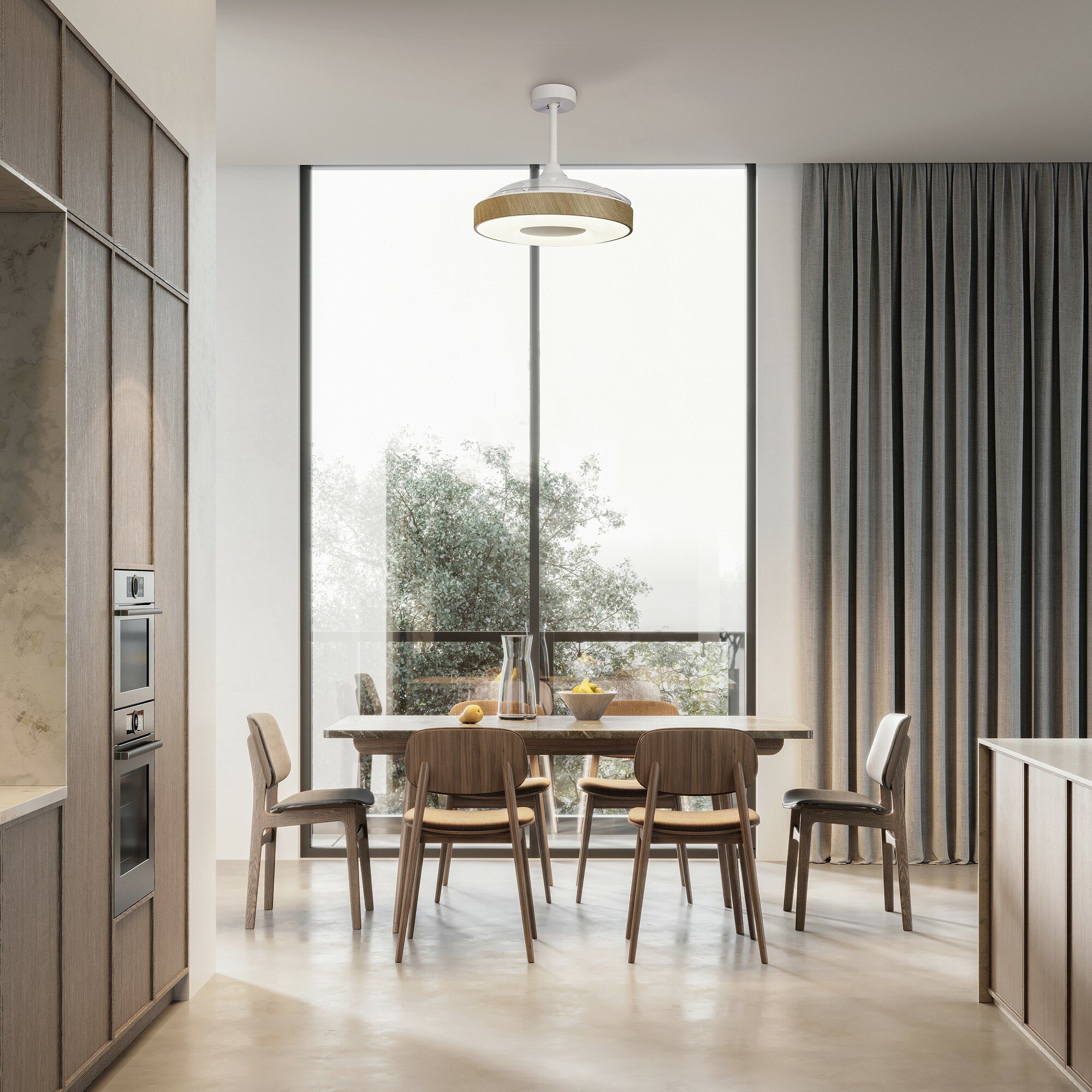 COIN FAN - это коллекция универсальных круглых светодиодных светильников с функцией дистанционного управления и регулировкой высоты. Главной особенностью данной коллекции являются трансформирующиеся лопасти вентилятора, которые раскрываются над светильником. С помощью пульта пользователь может управлять яркостью и цветовой температурой освещения, скоростью вращения вентилятора, а также открывать или закрывать лопасти. Каждый светильник коллекции способен менять свою цветовую температуру от 2700к до 5000К. Такая свобода в использовании дает возможность менять настроение и образ комнаты с помощью пары движений. Светильники COIN станут идеальным световым решением для просторных комнат, которые служат для ряда различных функций, например, как рабочее пространство днем и зона отдыха вечером. Лаконичный дизайн коллекции впишется в широкий спектр интерьеров от кухни до офиса. Светильники доступны в трех цветовых вариантах: белый, черный, эффект дерева, а также в двух диаметрах. Разнообразие отделки позволяет подобрать наиболее подходящий вариант для вашего интерьера.