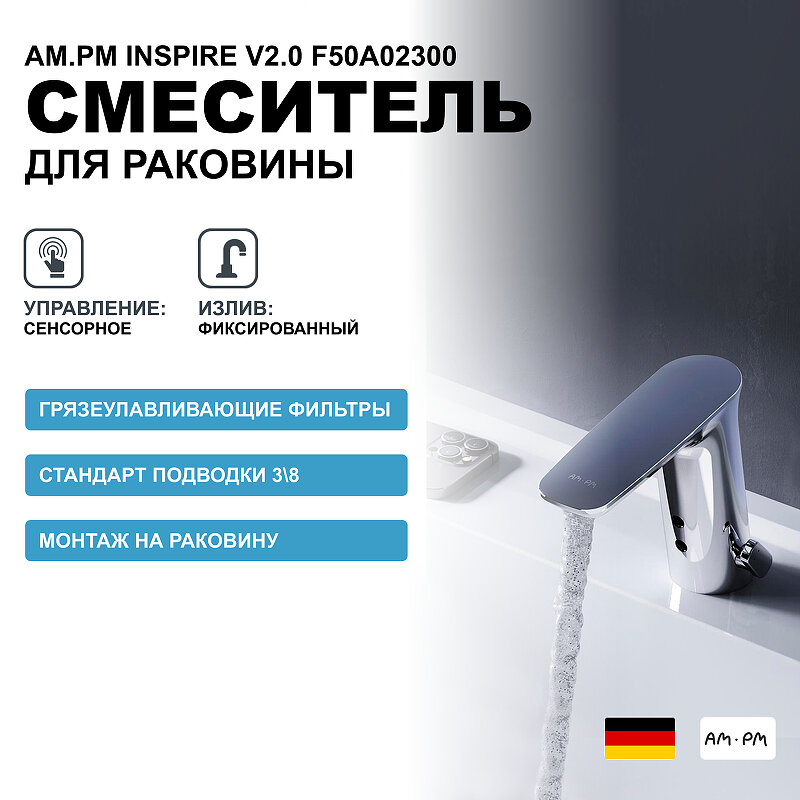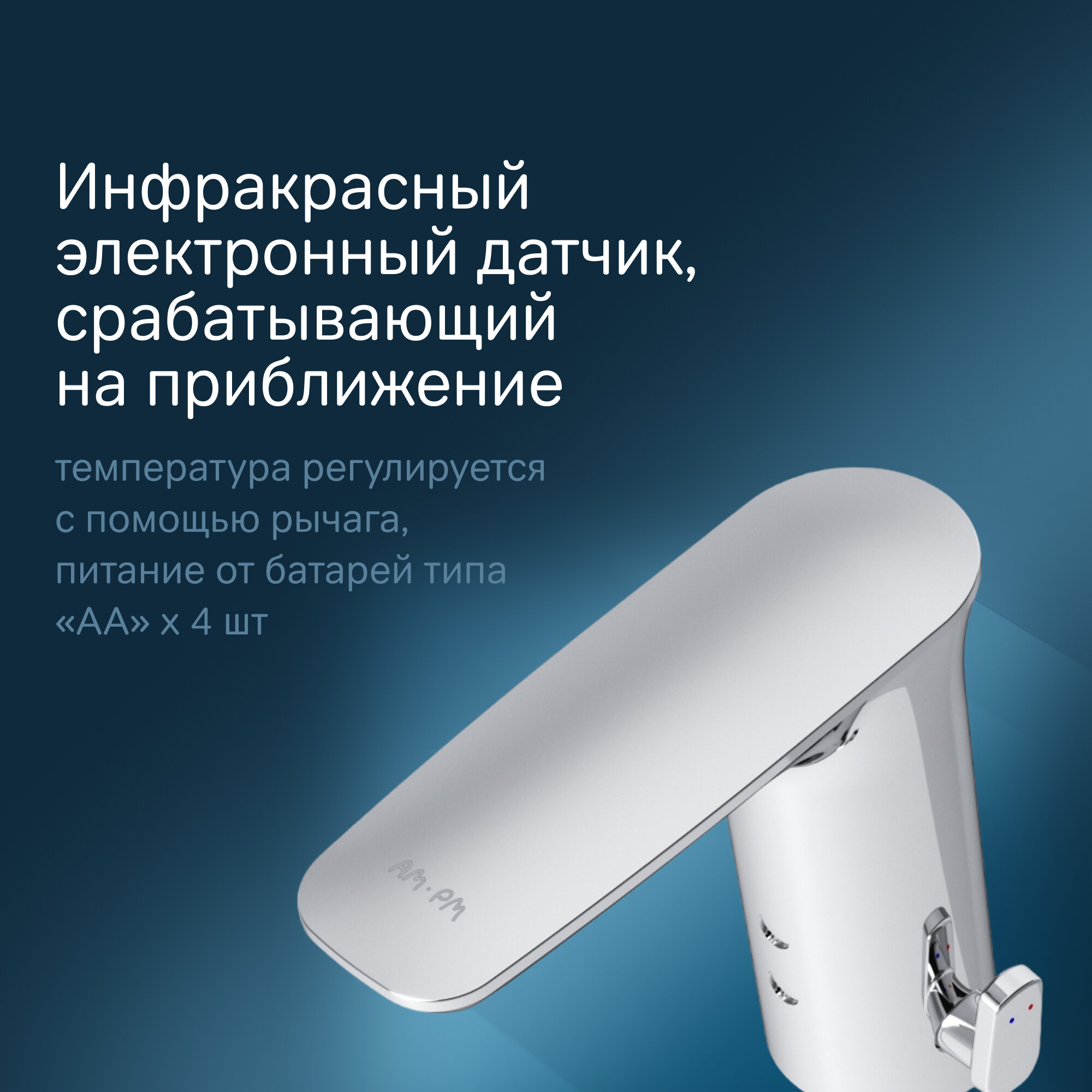 Смеситель для раковины Am.Pm Inspire V2.0 F50A02322. Инновационное пополнение коллекции Inspire V2.0: сенсорный смеситель для тех кто идет в ногу со временем теперь в новом матовом черном исполнении - Абсолютная гигиеничность: настройте температуру воды и при необходимости дистанцию срабатывания сенсора чтобы потом пользоваться смесителем без лишних прикосновений - Лаконичный облик сохраняющий высокую функциональность: ручка регулировки температуры расположена на самом смесителе что упрощает использование продукта. Универсальное решение: сенсорный смеситель Inspire V2.0 работает от обычных батареек АА.