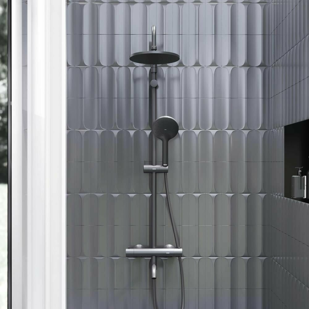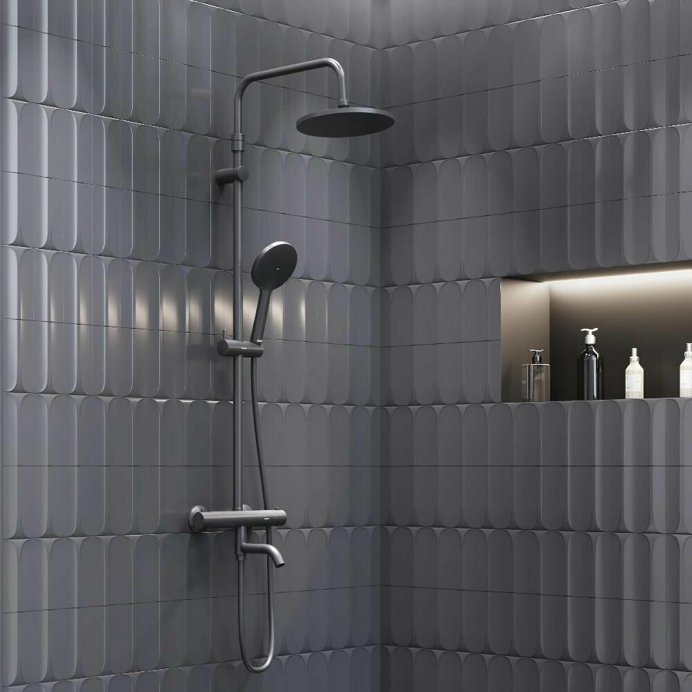Душевая стойка Damixa . Стильный и лаконичный дизайн душевой системы Jupiter прекрасно подойдет как для классической так и для современной ванной комнаты. Максимальная безопасность: термостатический картридж 35 мм обеспечивает точную настройку температуры и напора воды. Благодаря телескопической штанге с диапазоном регулировки 400 мм ежедневные процедуры будут одинаково комфортны для людей любого роста. Большое количество форсунок с микроотверстиями которые распределяют поток мягкими равномерными струями обеспечит вам расслабляющий эффект настоящего домашнего SPA. Переключайте потоки воды между ручной и тропической лейками плавным поворотом дивертора а между смесителем и ручной лейкой - поворотом излива на 90 градусов. Угол наклона тропической лейки можно регулировать. Инновационное PVD-покрытие гарантирует чрезвычайную прочность душевой системы. Матово-черная поверхность не выцветает с годами и устойчива к механическим повреждениям загрязнениям и отпечаткам пальцев.