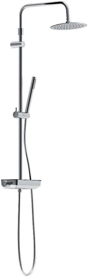 Душевая стойка Damixa . Душевые системы из коллекции Scandinavian Pure воплощение минималистичного датского дизайна и солидного скандинавского качества. Элегантные обтекаемые формы и ювелирный блеск станут настоящим украшением современной ванной комнаты. Максимальная безопасность: термостатический картридж 35 мм обеспечивает точную настройку температуры и напора воды. Выставляйте комфортные для вас параметры легким поворотом правой ручки смесителя. Непревзойдённый комфорт и удобство: смеситель выполнен в виде компактной полочки из закаленного стекла где вы можете хранить все необходимые вещи. Увеличенный диаметр верхнего душа с возможностью регулировки угла наклона и ручная лейка в трендовой форме стика подарят вам полный спектр ощущений - помогут взбодриться утром и расслабится вечером. Переключайте потоки воды между ручной и тропической лейками плавным поворотом левой ручки смесителя. Благодаря функции очистки резиновых форсунок Rub&Clean поддерживать чистоту стало еще проще. Инновационное покрытие High Gloss надежно защищает хромовую поверхность душевой системы от мелких повреждений и сохраняет ювелирный блеск на долгие годы.
