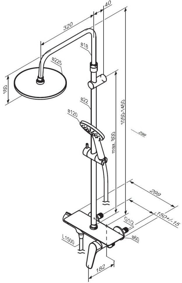 | ВКоробке | Душевая стойка - 1 шт. Верхний душ - 1 шт. Лейка - 1 шт. Шланг - 1 шт. Инструкция - 1 шт. |
