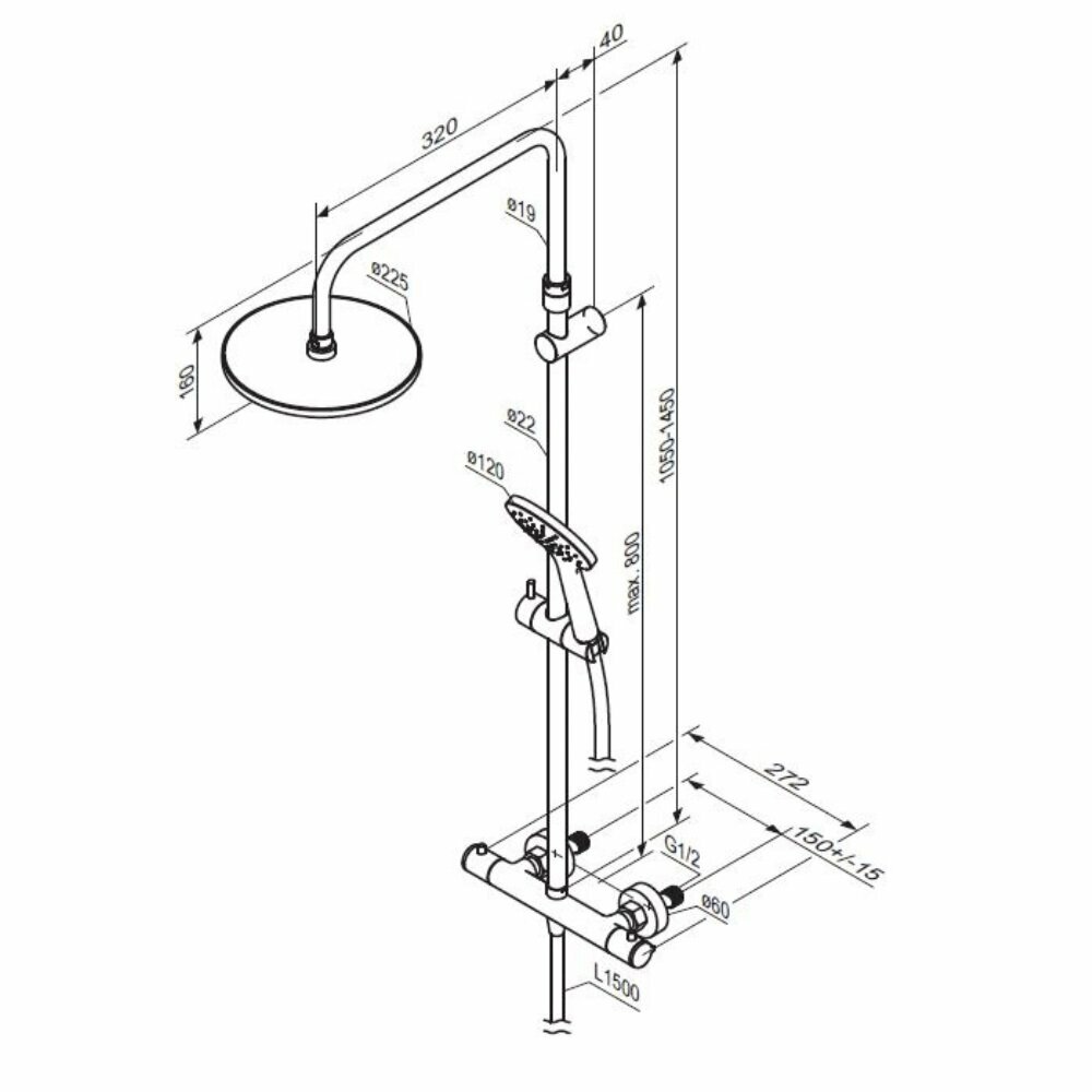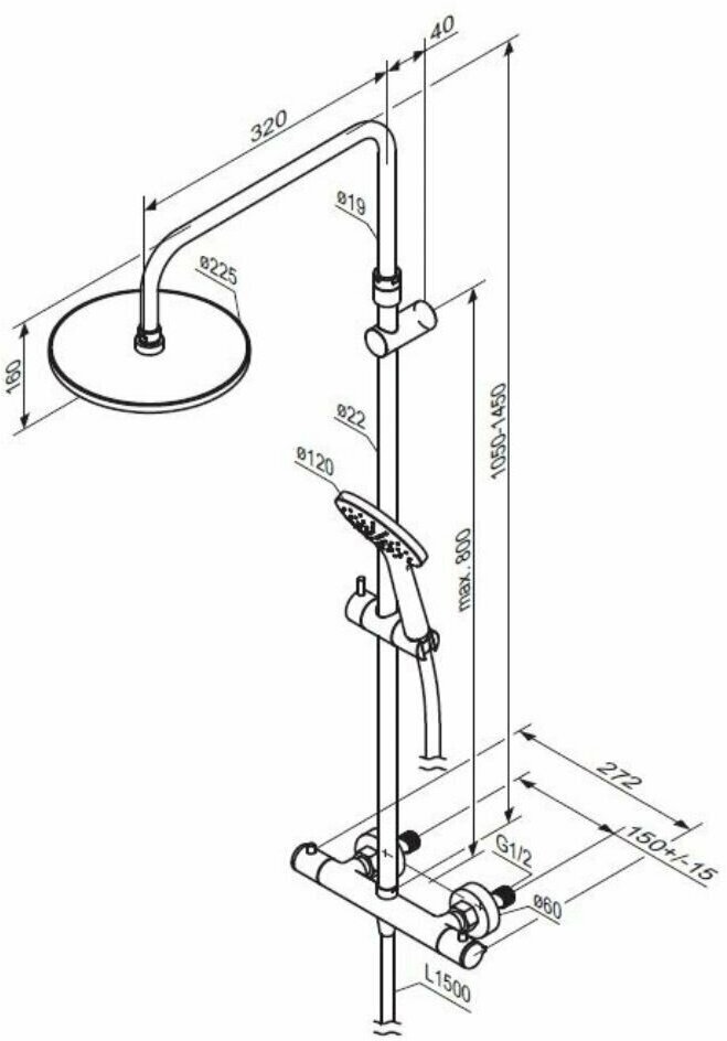 | ВКоробке | Душевая стойка - 1 шт. Термостат - 1 шт. Верхний душ - 1 шт. Лейка - 1 шт. Шланг - 1 шт. Инструкция - 1 шт. |