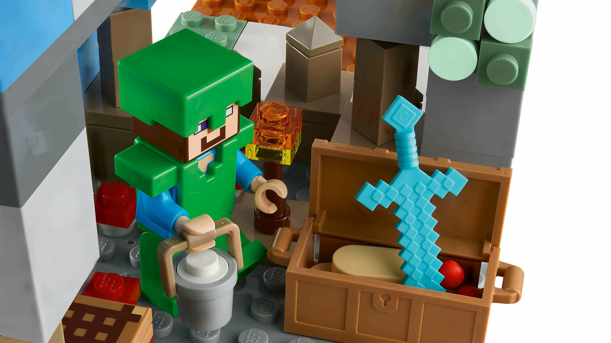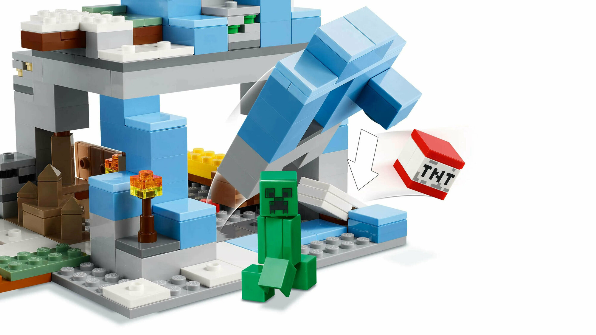 LEGO Minecraft «Ледяные вершины» (21243) наполнен практическими возможностями и функциями, которые подарят игрокам в возрасте от 8 лет и старше массу увлекательных приключений Minecraft. Игровой набор «всё в одном» — LEGO Minecraft The Frozen Peaks (21243) наполнен классическими особенностями и функциями, чтобы игроки могли строить, сражаться, исследовать и взрывать.