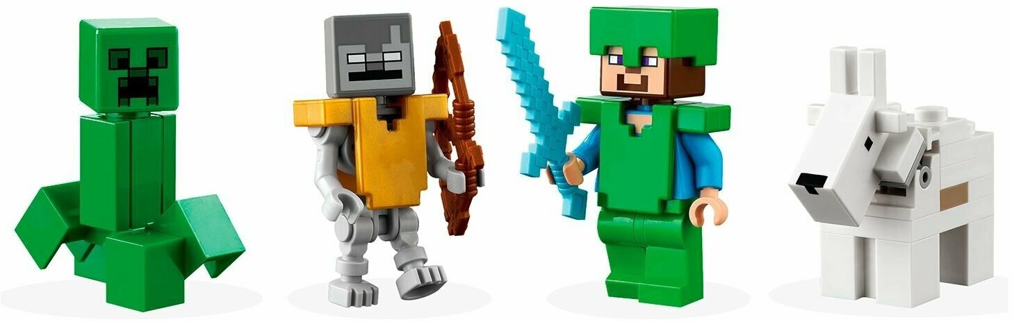 Фигурки Minecraft — набор включает в себя легендарных персонажей Стива, крипера, бродягу и козла, а также аутентичные аксессуары, такие как стол для крафта, факел и алмазный меч.