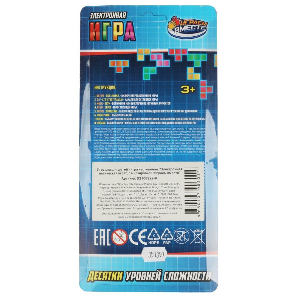 Играем вместе Электронная логическая игра 11,6х24,5х2,2 см