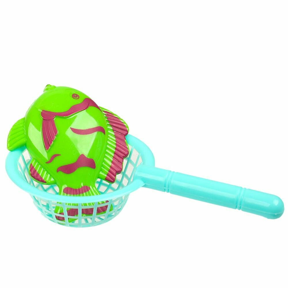 С помощью этого яркого набора ребёнок сможет самостоятельно заняться рыбной ловлей. Играть можно прямо в ванной, набрав в неё воды. Удобная удочка с катушкой, регулирующей леску, легко захватывает разноцветных рыбок при помощи магнита, а сачок поможет вытащить улов. Прекрасная игрушка, чтобы сделать купание веселее или развлечь ребёнка на отдыхе.
