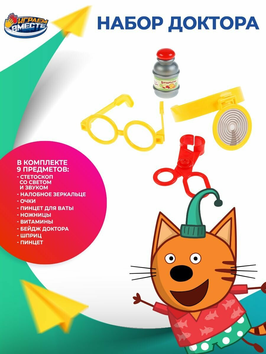 С этим набором ребёнок сможет придумать множество увлекательных сюжетов, согласно которым он будет выступать в роли доктора, а пациентами станут любимые игрушки. Играя с набором, малыш станет увереннее и будет расширять свой кругозор, знакомясь в процессе игры с различными медицинскими инструментами и их назначением. Для хранения и переноски предметов предусмотрен удобный пластиковый чемодан с ручкой.