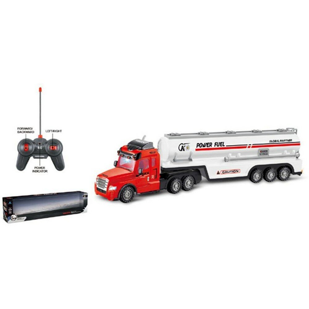 Игрушечный грузовик на радиоуправлении выполнен очень реалистично. Он двигается во всех направлениях: вперёд, назад, вправо и влево. Направления движения задаются игрушке нажатием рычагов пульта управления в соответствующие стороны.