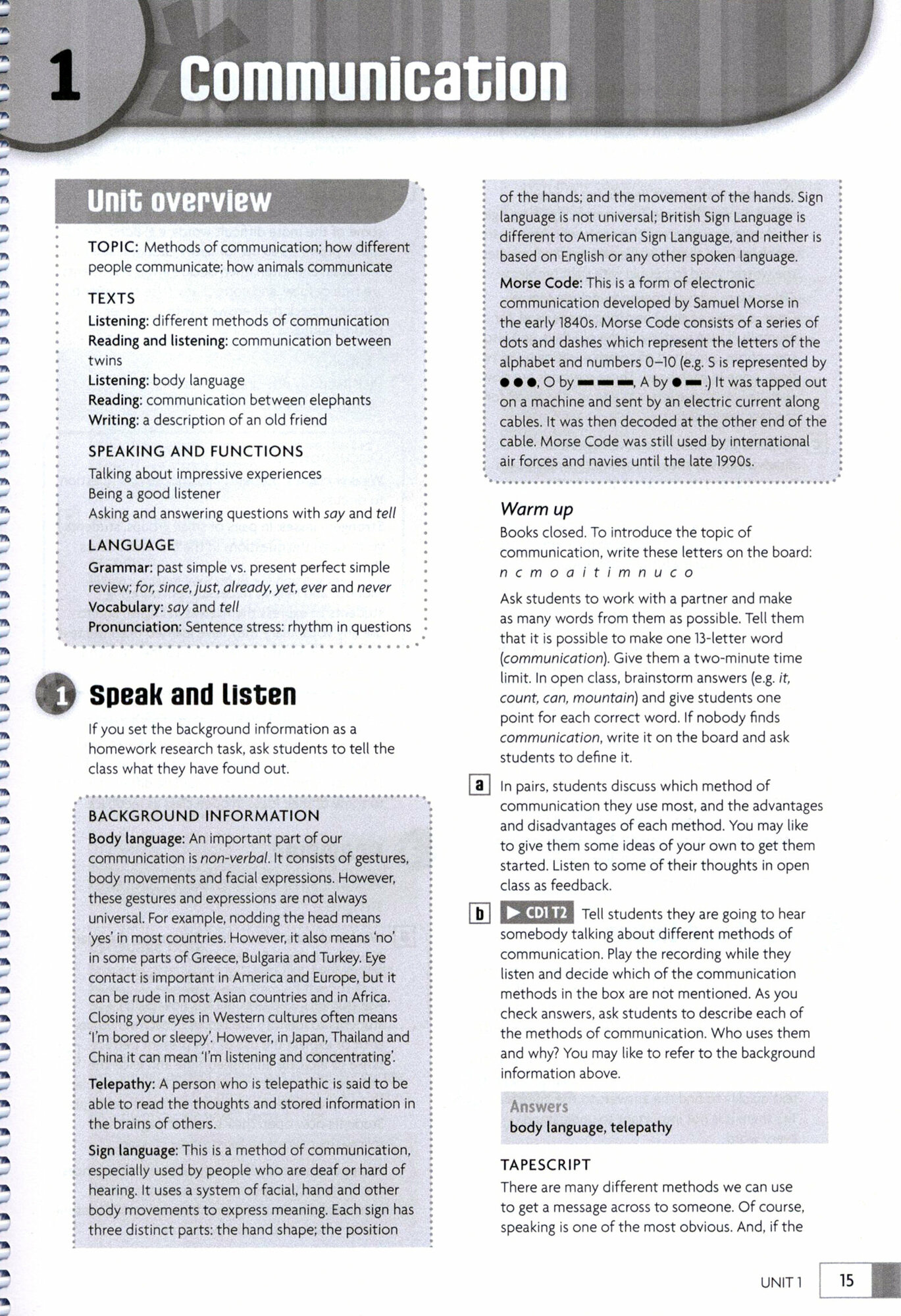 The Teacher's Resource Book contains extra photocopiable grammar and communication activities and full pages of teaching tips and ideas specially written by methodology expert, Mario Rinvolucri.