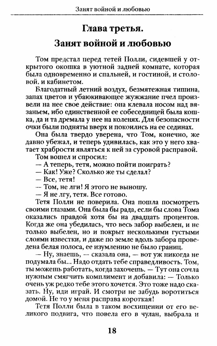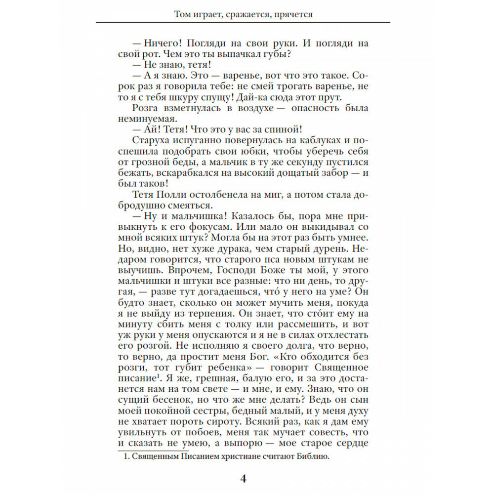 Книга Твена приглашает читателей в удивительный, яркий, неповторимый мир Детства. Мир, где возможно всё: и невероятные приключения, и интересные знакомства, и головокружительные тайны, и восторг первой любви, и настоящая дружба. Мир, в котором хочется оставаться как можно дольше.