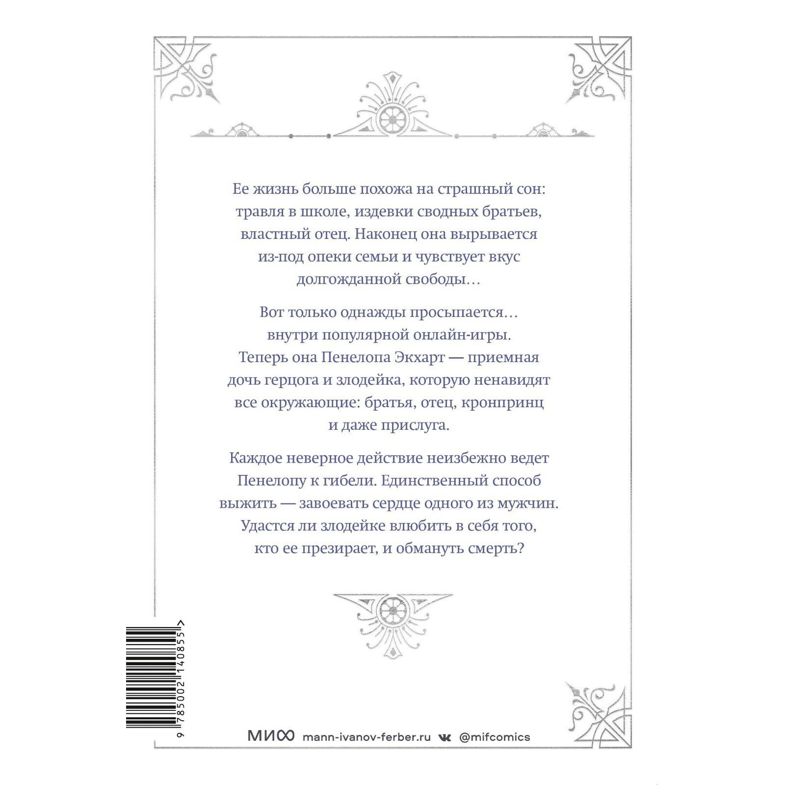 Это история девушки, которая становится сильной в невероятных обстоятельствах. Она живет обычной жизнью, сталкивается с проблемами, которые знакомы каждому: непонимание со стороны родителей, любовные переживания, одиночество. Пока однажды не просыпается Пенелопой Экхарт, главной злодейкой в популярной онлайн-игре - сильной, дерзкой и принципиальной. Все вокруг ее ненавидят, считают ничтожеством и желают смерти. Каждое неверное слово или поступок девушки – риск. Чтобы выжить, ей нужно завоевать симпатию одного из мужских персонажей. Однако это совсем не просто, ведь все они настроены против Пенелопы. Удастся ли ей обмануть саму смерть?
