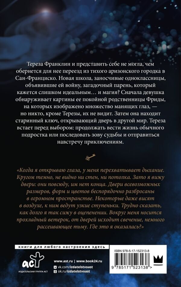Сначала девушка обнаруживает картины ее покойной родственницы Фриды, на которых изображено множество манящих глаз, - но никто, кроме Терезы, их не видит. Затем она находит старинный ключ, открывающий дверь в другой мир. Тереза встает перед выбором: продолжать вести жизнь обычного подростка или последовать зову судьбы и отправиться навстречу приключениям.