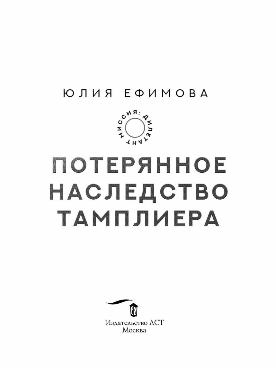 Миссия Дилетант. Потерянное наследство тамплиера (Ефимова Юлия Сергеевна); ИЗДАТЕЛЬСТВО "АСТ", 2023
