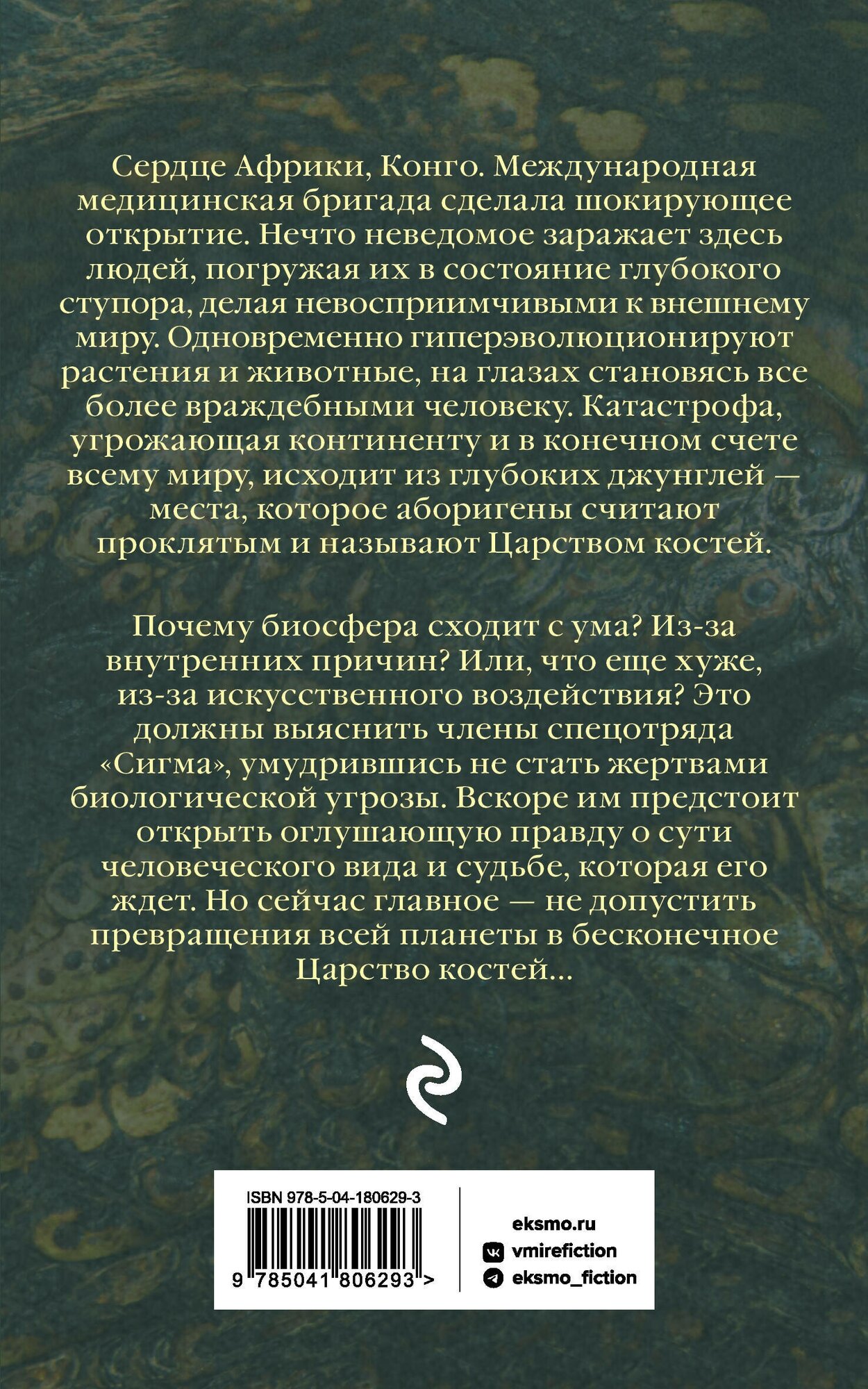 Почему биосфера сходит с ума? Из-за внутренних причин? Или, что еще хуже, из-за искусственного воздействия? Это должны выяснить члены спецотряда «Сигма», умудрившись не стать жертвами биологической угрозы. Вскоре им предстоит открыть оглушающую правду о сути человеческого вида и судьбе, которая его ждет. Но сейчас главное — не допустить превращения всей планеты в бесконечное Царство костей…