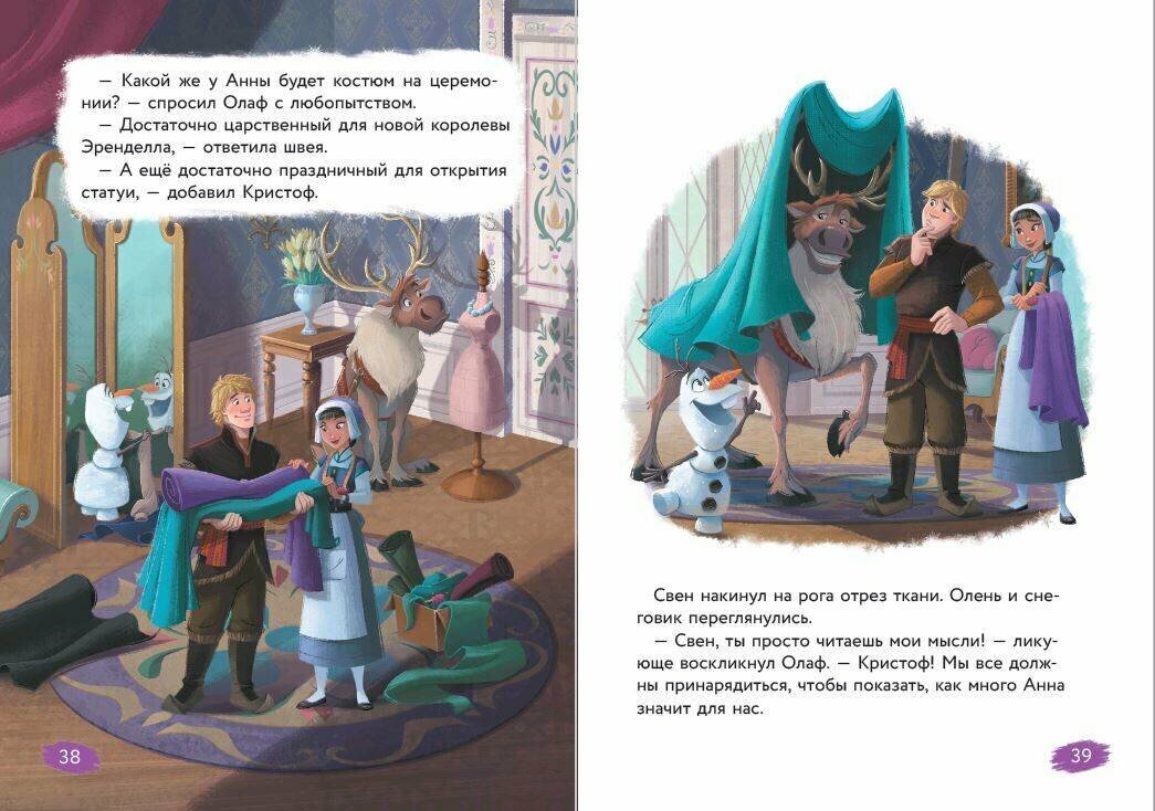 Четвертая книга заняла свое место на моей полке,но, если честно, от этой книги я ожидала чуть-чуть больше, от прошлых частей я была в восторге, а в этой как будто чего-то не хватает. А в целом книга понравилась, и картинки яркие, и минимум текста на страницах, и бумага приятная. Всем детям советую и просто любителям мультика \"Холодное сердце\"
