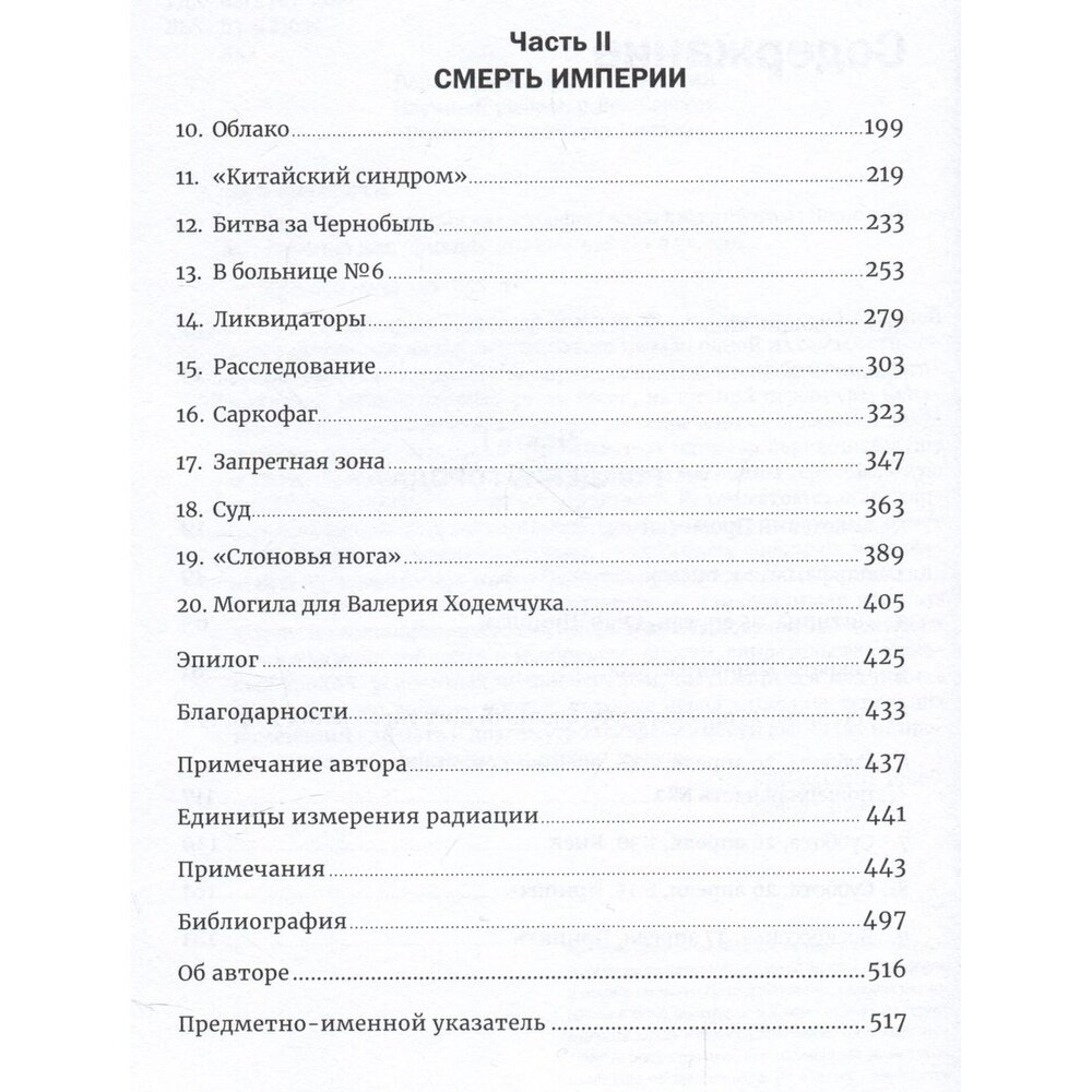 Основываясь на более чем десятилетней работе, записях сотен бесед, на личной переписке, неизданных воспоминаниях и недавно рассекреченных архивных документах, журналист Адам Хиггинботам написал бередящее душу и захватывающее произведение, в котором мы видим чернобыльскую катастрофу глазами ее первых свидетелей.