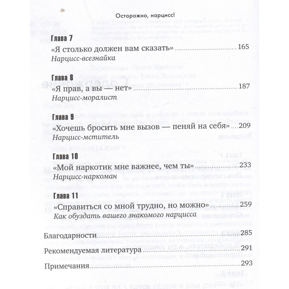 Автор книги рассказывает о правилах поведения с нарциссами любого типа: моралистами, мстителями, провокаторами и многими другими. Он анализирует наиболее распространенные поведенческие модели и дает рекомендации, как не поддаваться влиянию самовлюбленных типов.