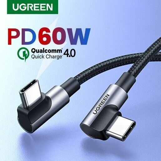 Кабель UGREEN 70531 Angled USB-C Aluminum Case with Braided 2м black US323