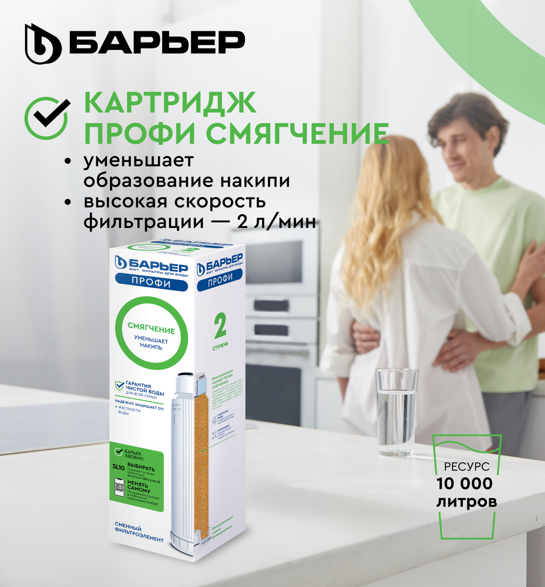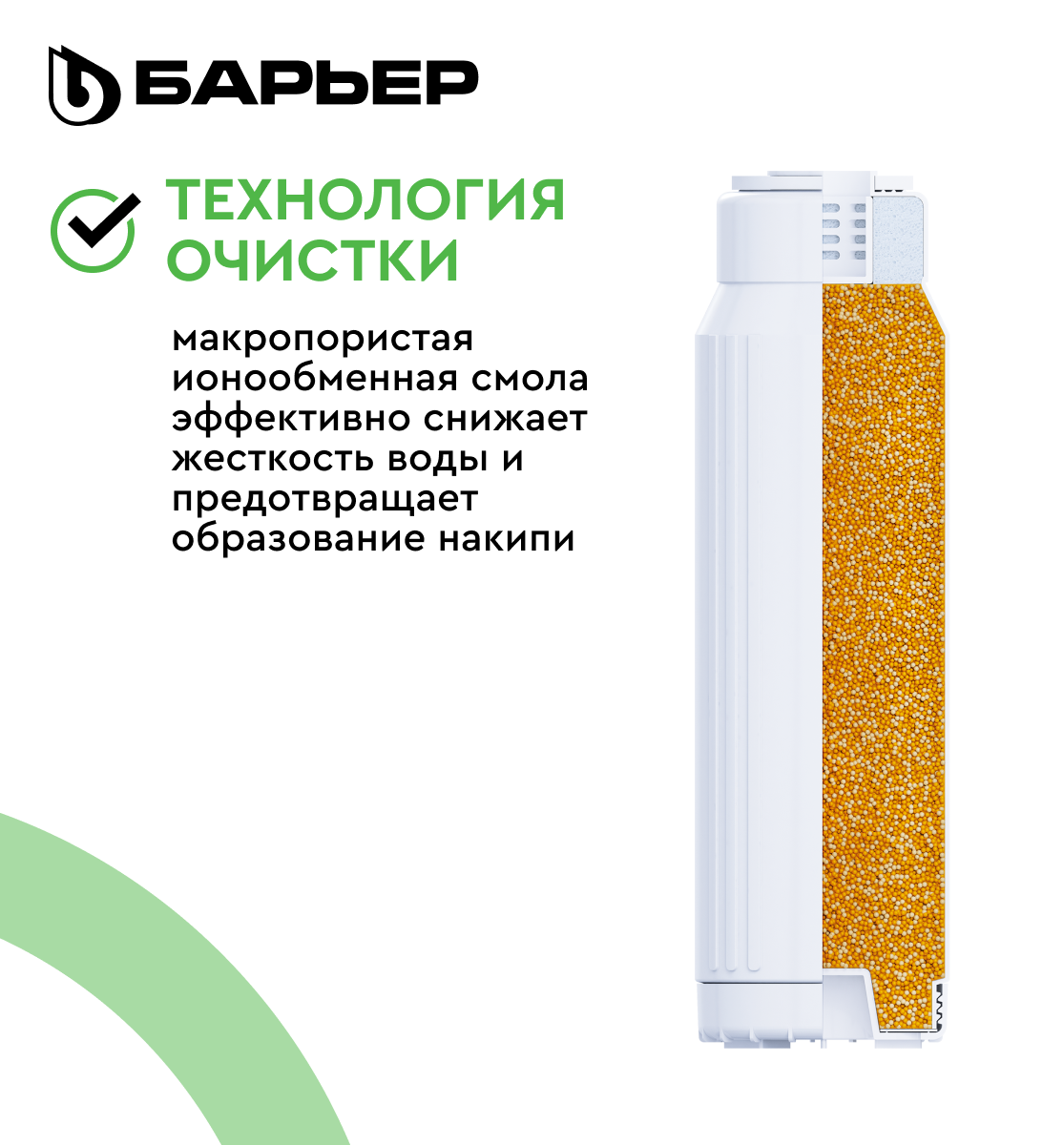 Сменный картридж Барьер служит для умягчения жесткой водопроводной воды. Устанавливается во вторую ступень водоочистителей Профи Hard и Профи Complex.