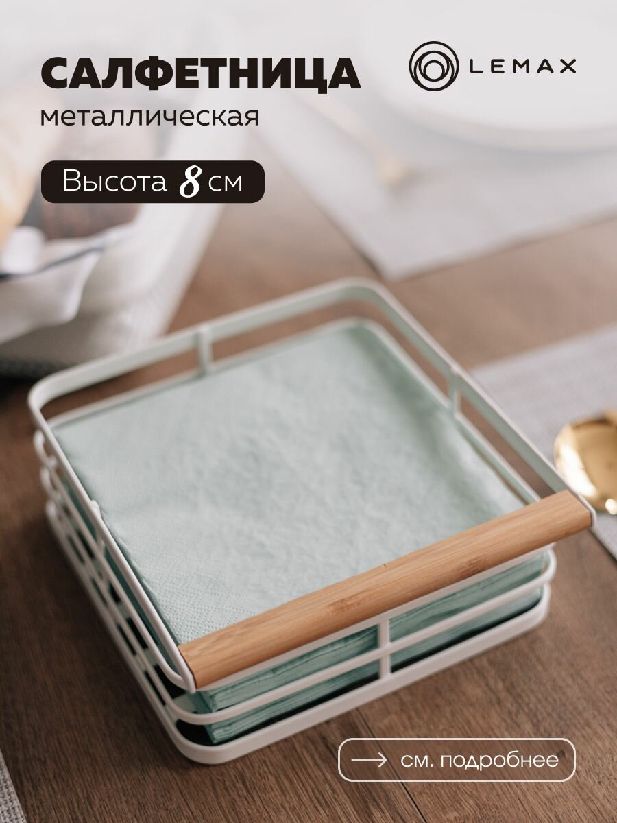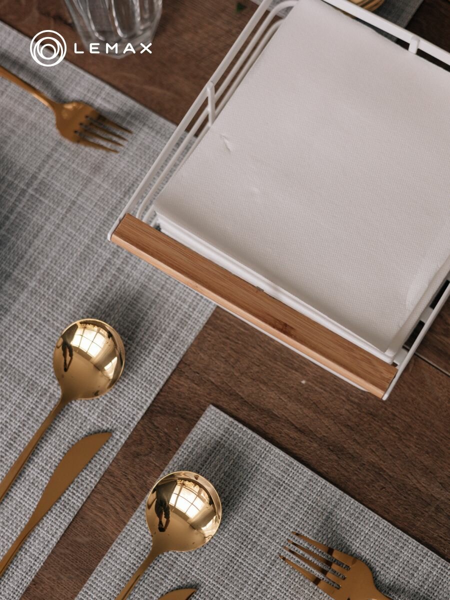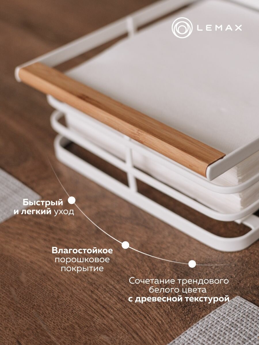Трендовый черный цвет с акцентом из светлого дерева позволяет ей быть одновременно заметной и не вычурной. При этом салфетница качественно покрашена — порошковое покрытие устойчиво против жидкостей, трения и других механических воздействий. Оно же обеспечивает легкий уход за изделием — достаточно изредка протирать ветошью.