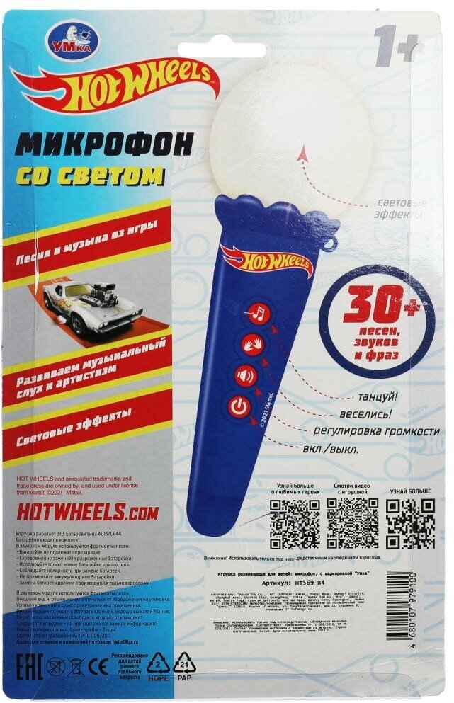 Музыкальный микрофон «Hot Wheels» ТМ «УМка» – отличный выбор для маленьких поклонников легендарных гоночных машинок: