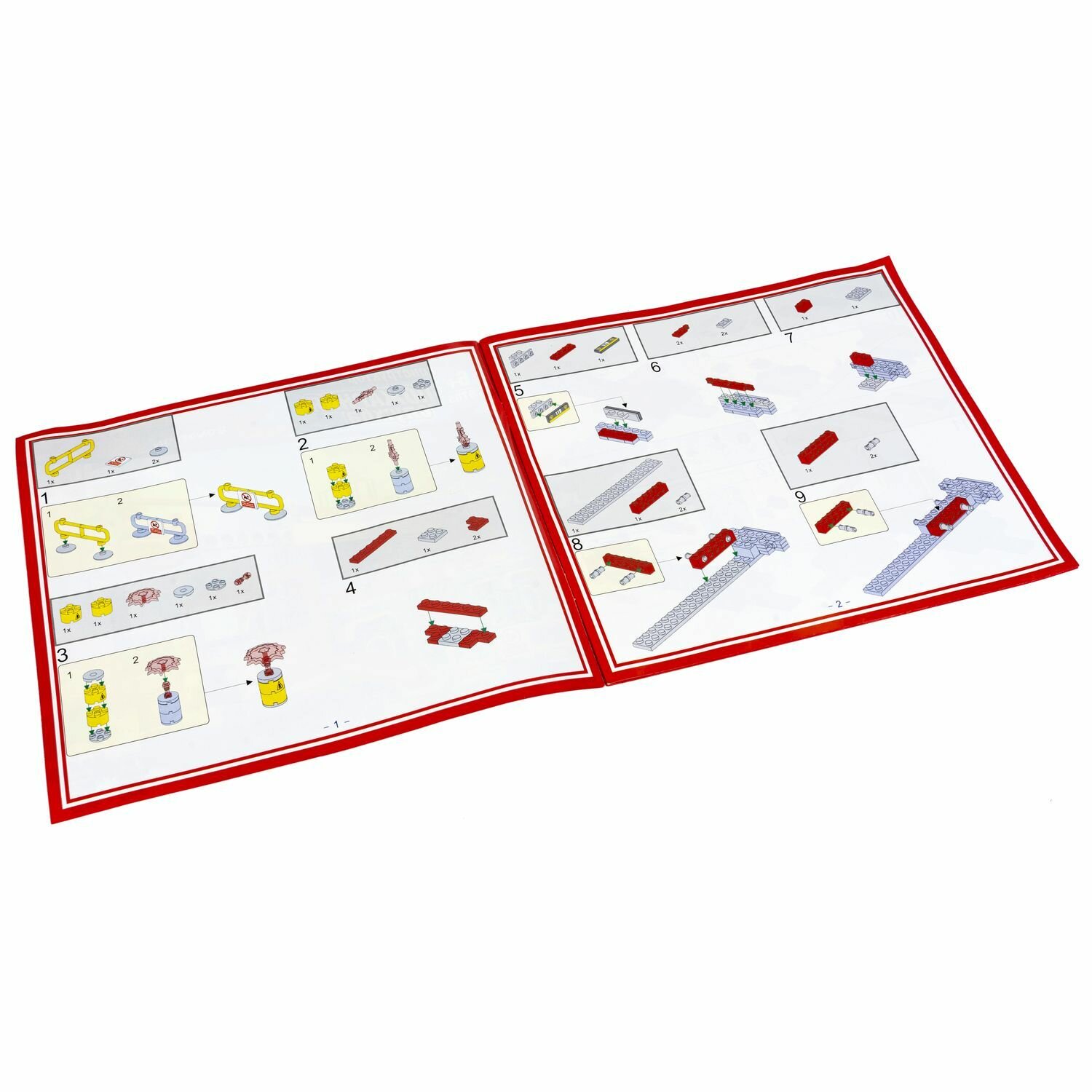 В комплект входят инструкция и 349 деталей, совместимых с конструкторами от мировых производителей.