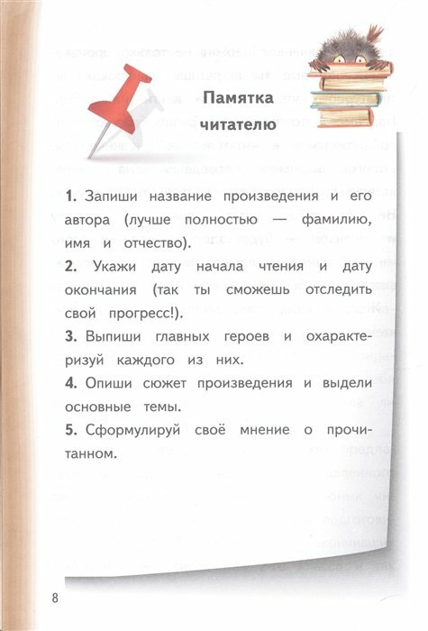 Данное издание представляет собой читательский дневник, заполнение которого позволит не забыть самое важное. Анализируя художественные произведения, записывая основные события и формируя собственное отношение к прочитанному, юный читатель учится делать выводы и грамотно формулировать свои мысли в письменном виде.
