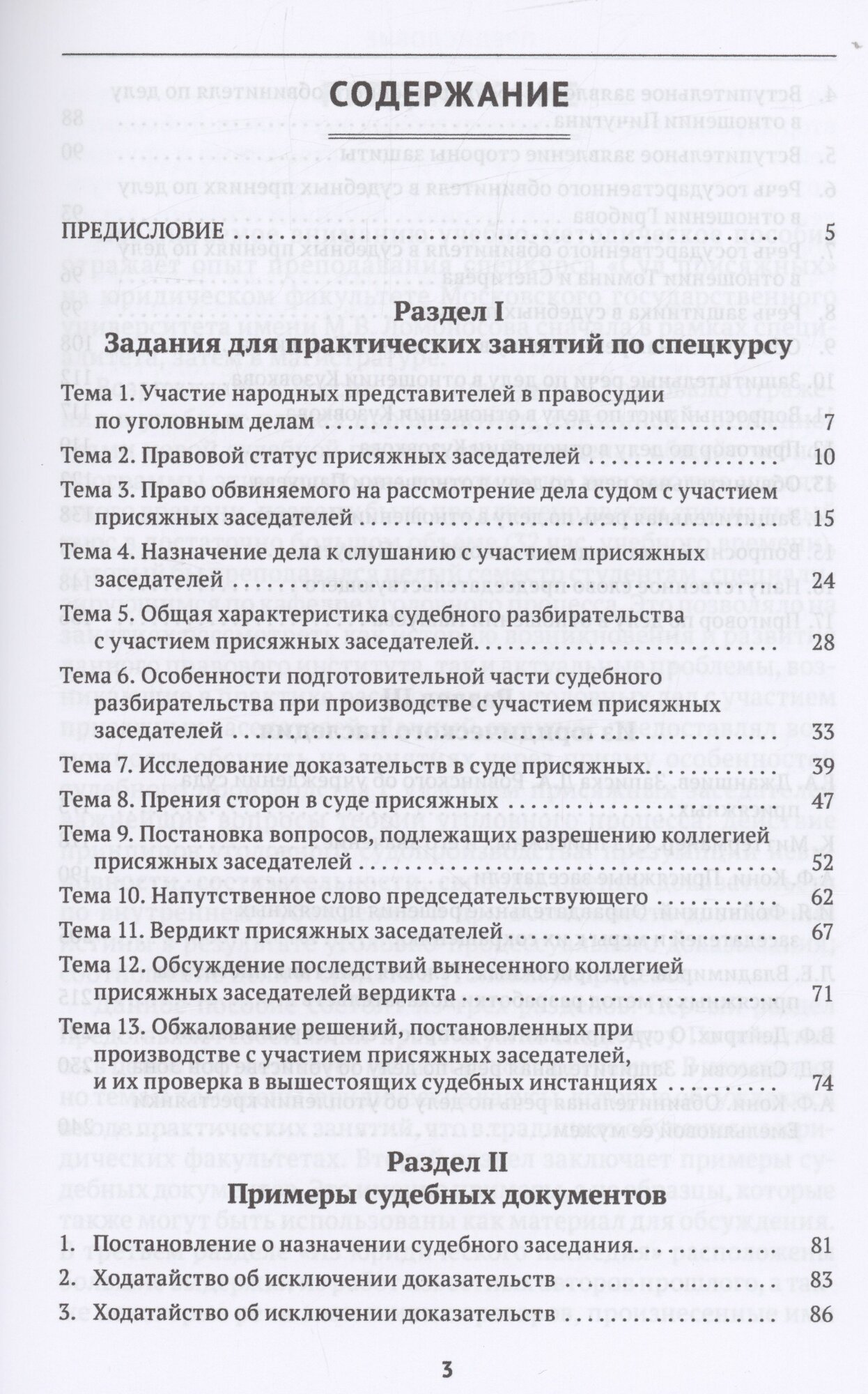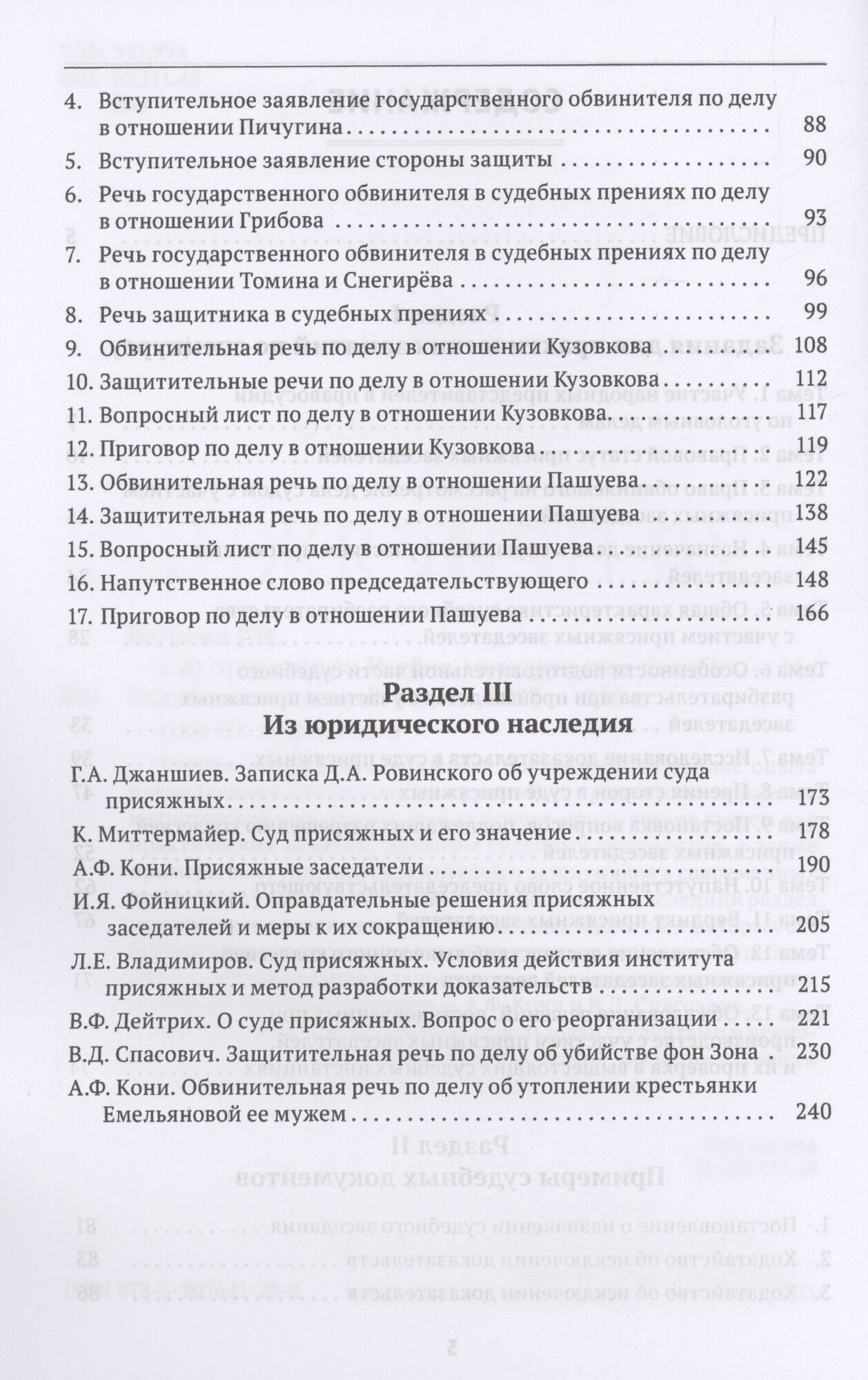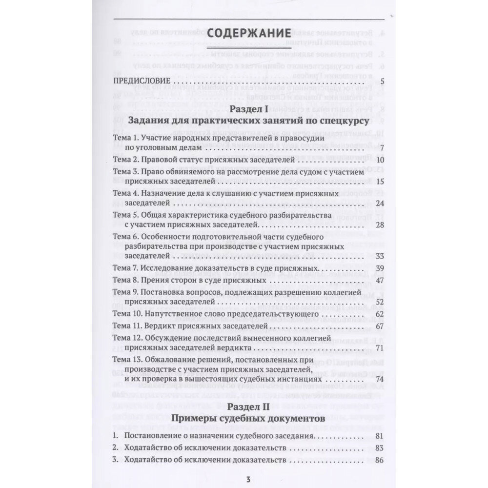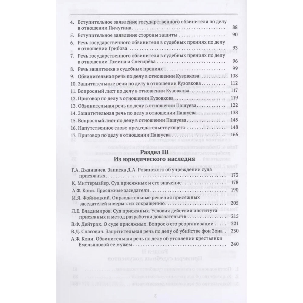 Учебно-методическое пособие составлено на основе опыта преподавания специального курса «Суд присяжных» в рамках магистерской программы. Оно включает юридические казусы для практических занятий, примеры судебных документов, а также примеры выступлений обвинителей и защитников в современных процессах с участием присяжных заседателей.В последний раздел помещены извлечения из работ известных юристов, в которых отразилась научная полемика о суде присяжных, а также две судебные речи — обвинительная и защитительная — одних из самых ярких судебных ораторов прошлого — А.Ф. Кони и В.Д. Спасовича.Материал пособия может быть использован студентами и преподавателями как в рамках специальных курсов, так и при изучении и преподавании общего курса уголовного процесса.