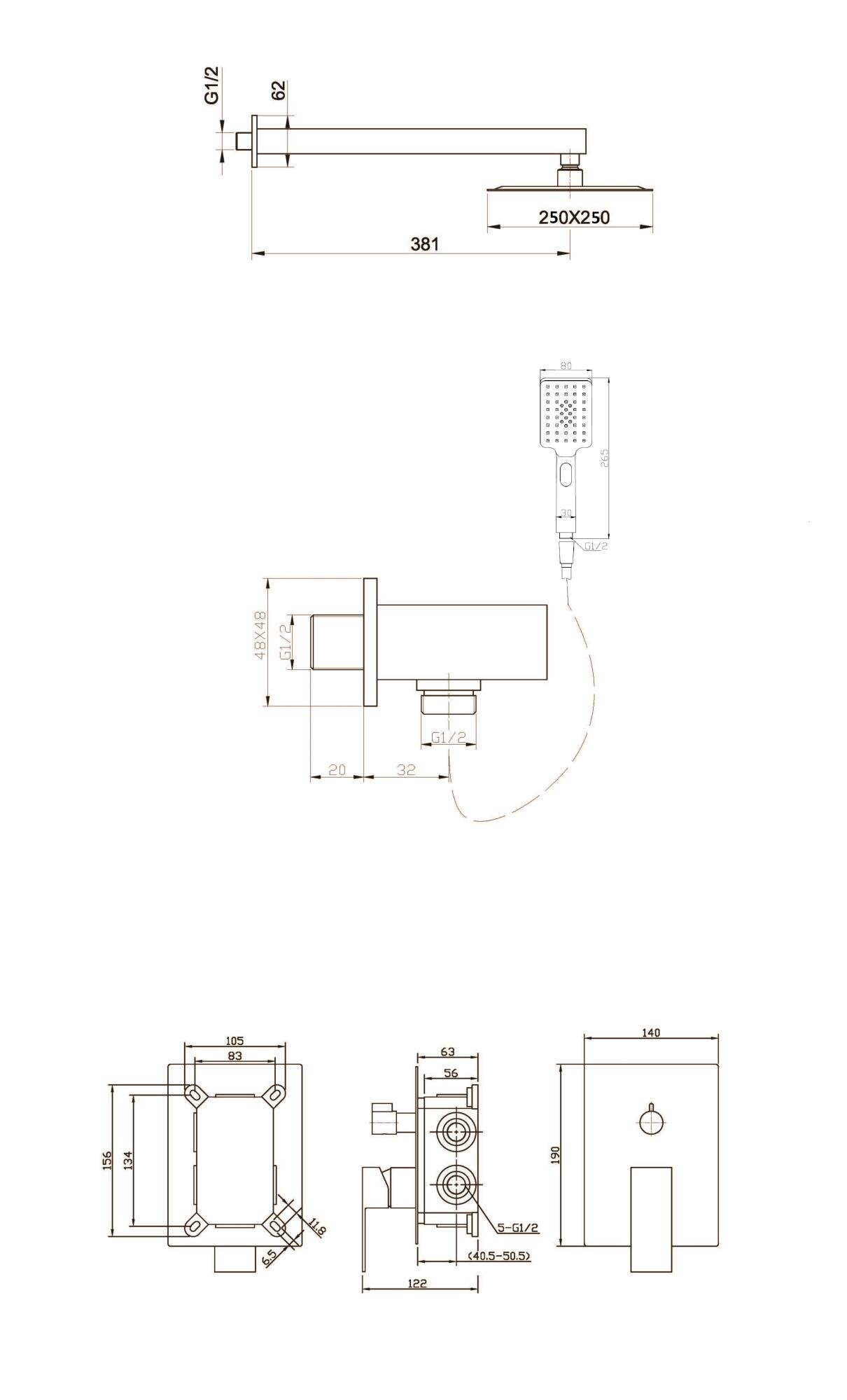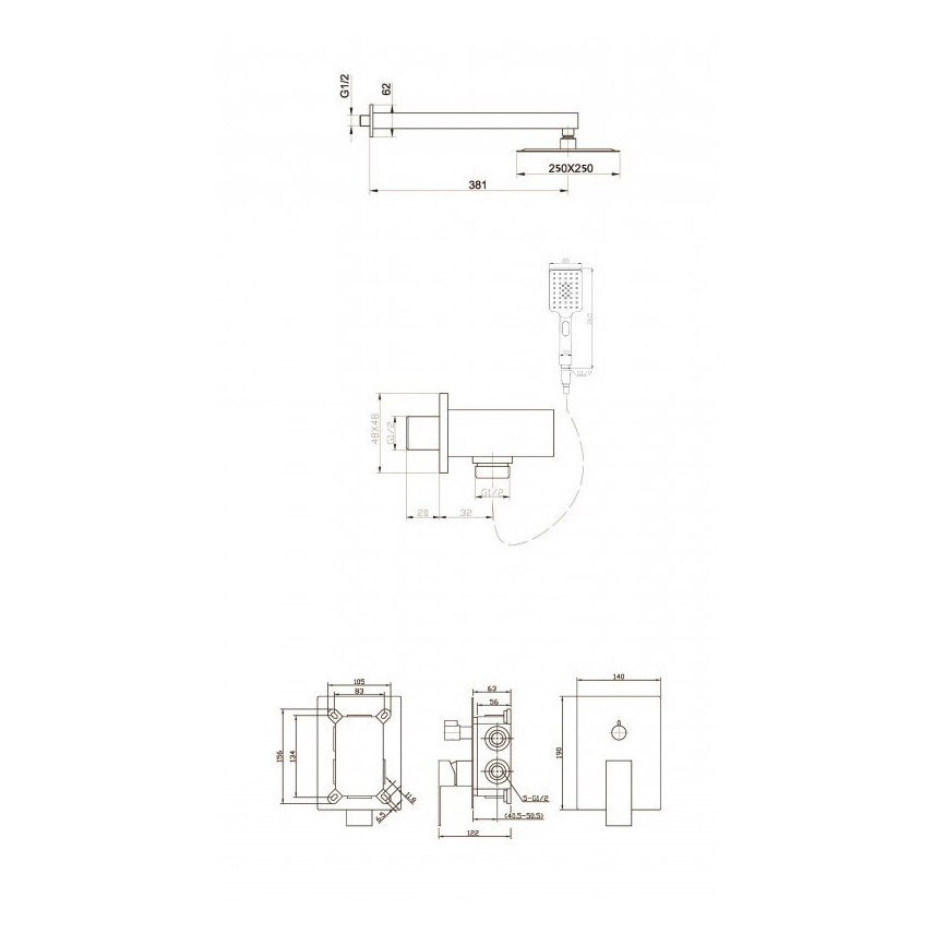 | Форма верхнего душа | квадратная |