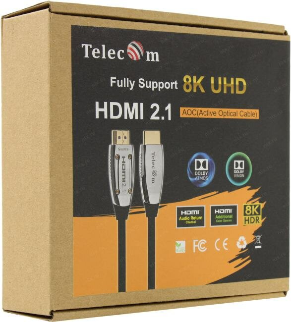 | Прочие особенности | Активный оптический кабель HDMI 19M/M,ver. 2.1, 8K@60 Hz применяется для соединения компьютеров, Blue-Ray и DVD плейеров, игровых консолей, видео и фото камер с телевизорами, мониторами, видео проекторами и предназначен для передачи аудио и видео сигнала , , Full HD с разрешением 1920x1080,, , Ultra HD 4K с разрешением 3840x2160,, , Full 4K с разрешением 4096x2160,, , 5K с разрешением 5120х2880,, , 8К с разрешением 7680х4320 ,, , 10К с разрешением 10328x7760 пикселей, , и максимальной пропускной способностью канала до 48 Гбит/сек . Контент стандарта 8К передается по кабелю HDMI без сжатия, для видеоизображения стандарта 10К применяется сжатие DSC 1.2 (Display Stream Compression)., Полностью поддерживает режимы 3D, HDCP 2.2 , VVR, QMS, ALLM, QFT, HDR , eARC., , VVR (Variable Refresh Rate), , Переменная частота обновления (VRR) является прорывом для пользователей компьютерных и видеоигр . Она уменьшает или устраняет задержку, дрожание и разрыв кадра для более плавного и детализированного игрового процесса., , QMS (Quick Media Switching), , QMS устраняет помехи, используя механизм VRR для изменения частоты кадров, позволяя быстро и плавно переключаться с номинальной частоты 60 Гц на любую более низкую скорость передачи данных (до 24 Гц)., , ALLM (Auto Low Latency Mode), , ALLM позволяет игровой консоли или ПК автоматически переключаться в режим с низкой задержкой для игр. Это может быть удобно, например для караоке и видеоконференций ., , QFT (Quick Frame Transport), , QFT снижает задержку для более плавной картинки без рывков и пауз в режиме реального времени. Это еще одна технология, улучшающая пользовательский опыт в играх и приложениях виртуальной реальности., , Dynamic HDR, , Динамический HDR позволяет достичь идеальных значений яркости и контрастности, повышенного цветового охвата, глубокого черного и яркого белого цвета и улучшенной детализации., , Преобразователи сигнала из меди в оптику находятся внутри разъемов. Дополнительного питания не требуется. Использование оптики позволяет передавать HDMI сигнал без потери качества на большие расстояния, чем при использовании медного кабеля. Оптика значительно более устойчива к внешним электро-магнитным помехам и сама помех для электронного оборудования не создает, что значительно расширяет сферу применения . |