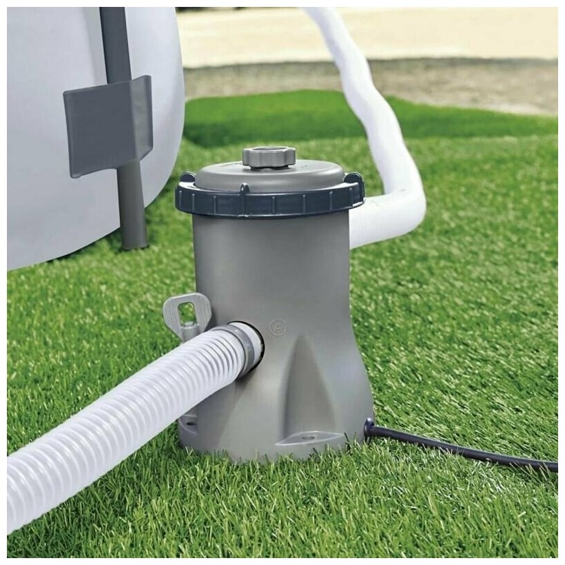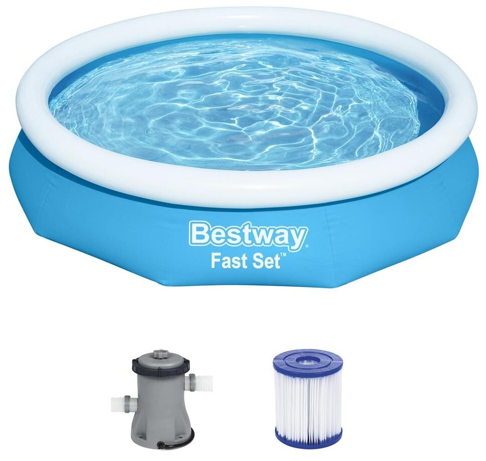 Надувной бассейн Bestway 57458 Fast Set отличается простотой и легкостью. Стенки бассейна, выполнены из армированного ПВХ, внешний слой — полиэстер для особой прочности. Поддержка бортов осуществляется при помощи надувного кольца, которое поднимается по мере наполнения бассейна и расправляет его стенки. Для установки бассейна нужна плоская, горизонтальная площадка. Время сборки и подключения бассейна не более 10-15 минут. На холодное время года не рекомендуем оставлять бассейн на открытом воздухе. Удобный сливной клапан позволяет присоединить садовый шланг, что дает возможность слить воду в любое место. В комплекте имеется фильтр-насос производительностью 1249 литров в час, для очистки воды в бассейне.