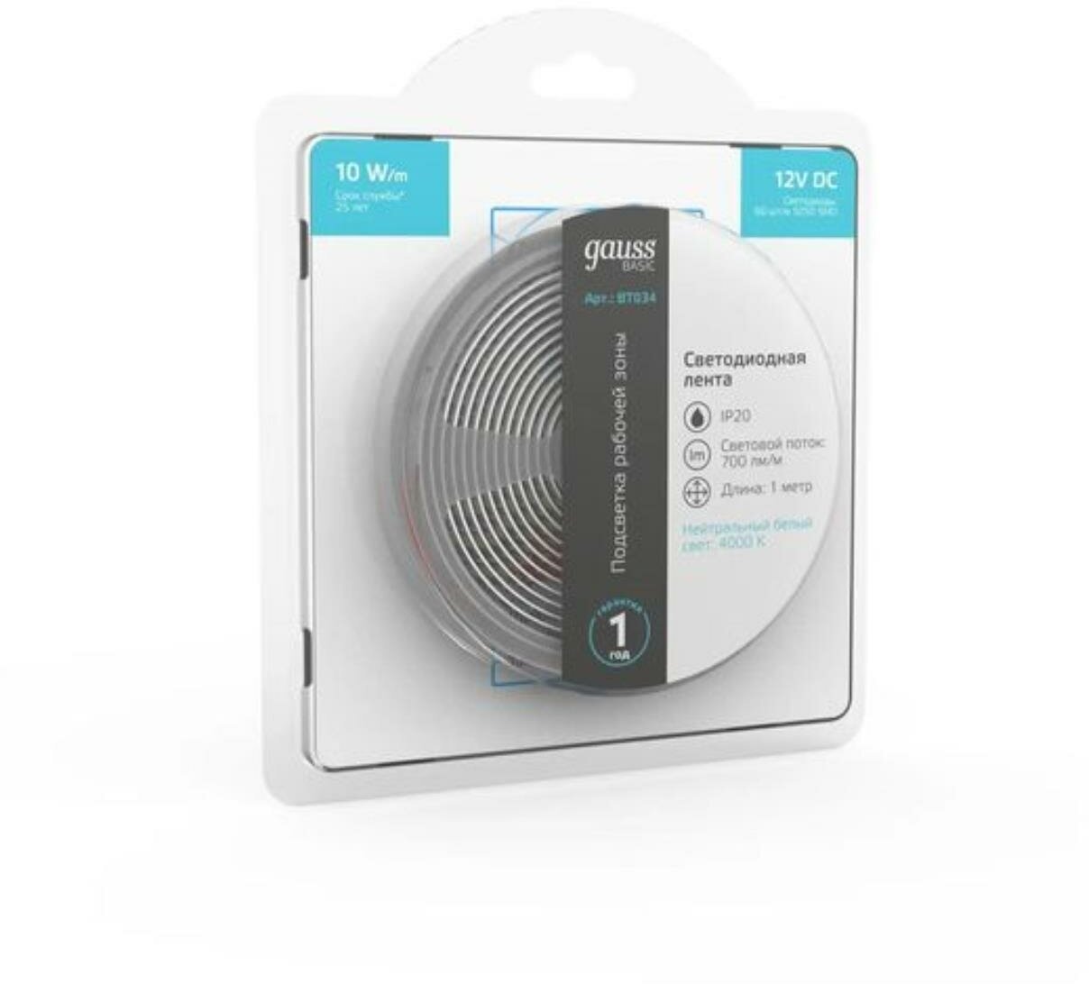 Светодиодная лента Gauss 10W/m 120LED/m 2835SMD нейтральный белый 3M BT038