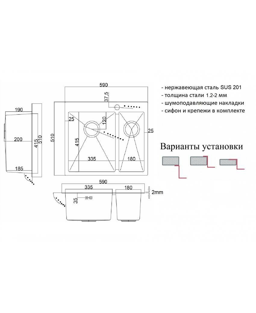 Кухонная мойка ZorG LIGHT из нержавеющей стали толщиной 1,2 мм, произведена методом ручной сварки, что гарантирует толщину стали по всей поверхности. Верхняя платформа моек серии Zorg Light выполнена из нержавеющей стали марки SUS201 толщиной 2 мм, идеально ложится на поверхность столешницы без загибов кромки. Мойки ZorG обладают повышенной прочностью. В процессе обработки поверхности методом брашинга создается матовая, брашированная поверхность, устойчивая к появлению царапин, повреждений и загрязнений. Корпус мойки обработан специальным противошумным составом и дополнительными резиновыми накладками с 5-ти сторон чаши. Комплектация мойки ZorG LIGHT: - выпуск с переливом;- сифон; - крепежи.